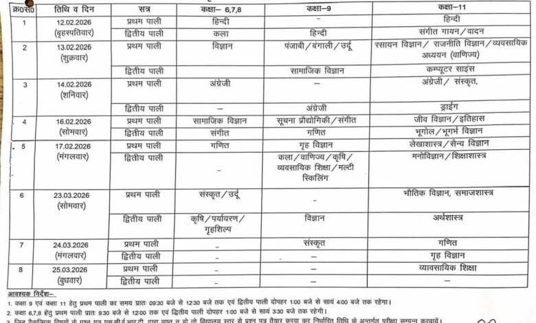 (शहजाद अली हरिद्वार)देहरादून। राज्य के माध्यमिक विद्यालयों में वार्षिक गृह परीक्षाएं 12 फरवरी, 2026 से 17 फरवरी, 2026 और 23 मार्च, 2026 से 25 मार्च, 2026 के मध्य संपन्न होंगी। निदेशक माध्यमिक शिक्षा डॉ० मुकुल कुमार की ओर से मुख्य शिक्षा अधिकारियों को जारी आदेश में कहा गया है