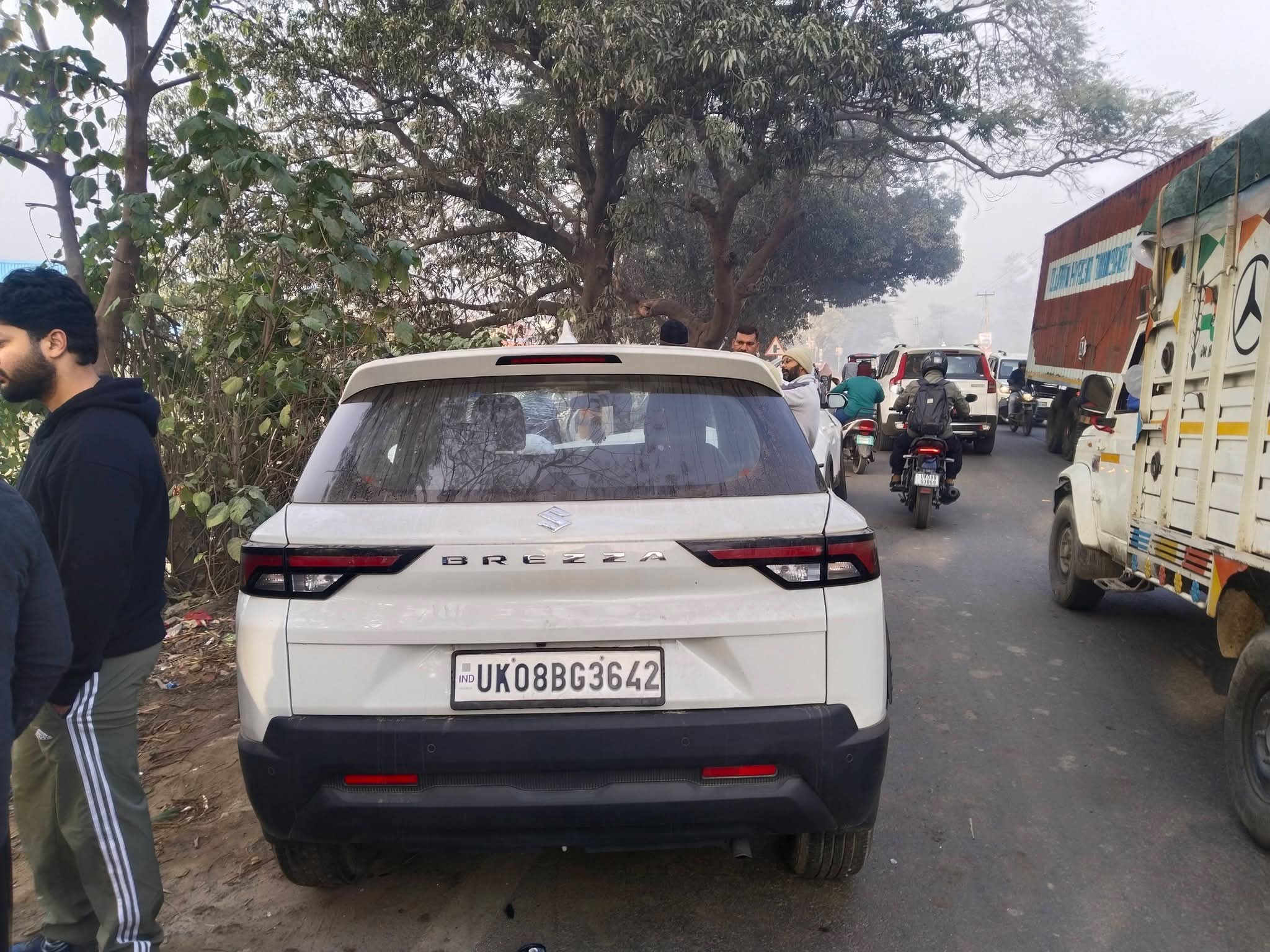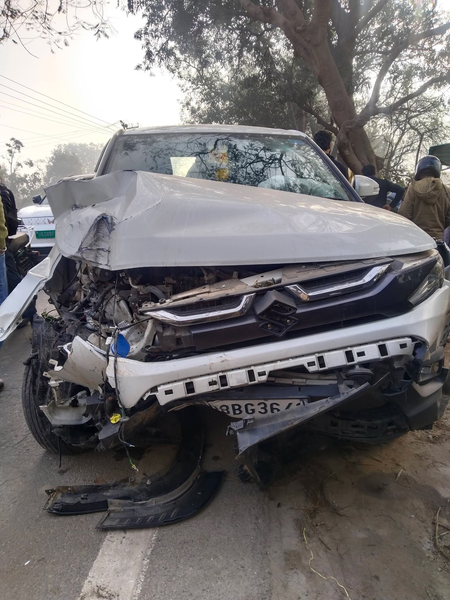 प्रत्यक्षदर्शियों के अनुसार, चलती हुई ब्रेजा कार का अचानक टायर फट गया, जिससे वाहन अनियंत्रित होकर आगे चल रहे ट्रैक्टर से जा टकराया। टक्कर इतनी तेज थी कि मौके पर अफरा-तफरी मच गई।