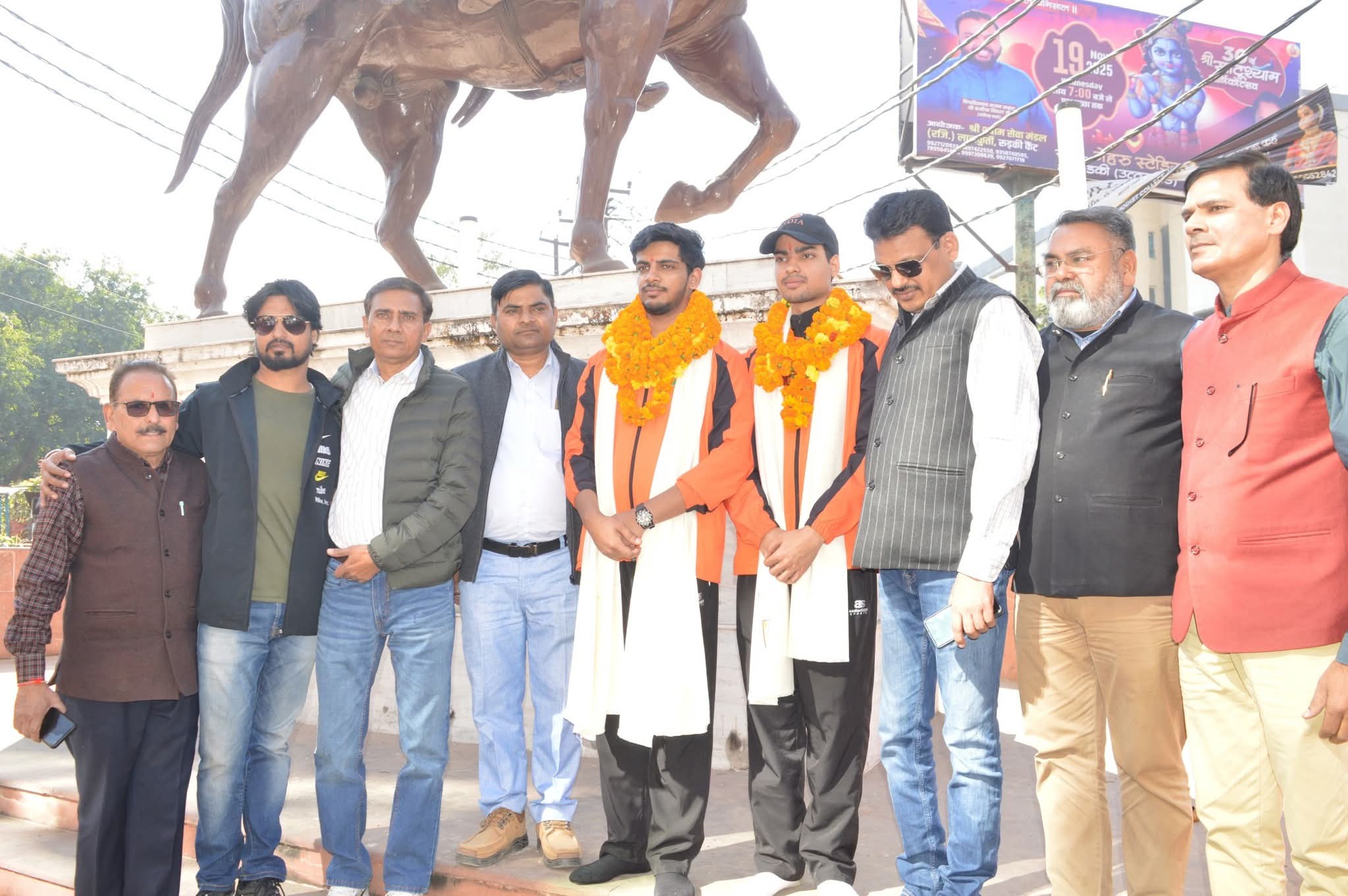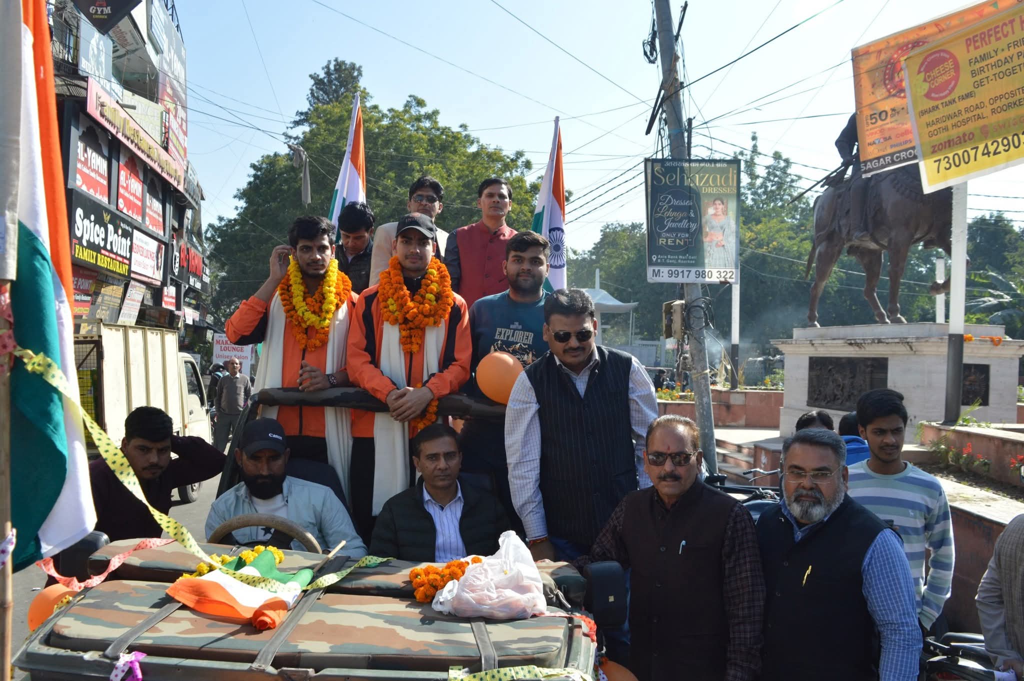 चौधरी चरण सिंह चौक, साउथ सिविल लाइन, मिलिट्री चौक, महाराणा प्रताप चौक, सिविल लाइन बाजार, शहीद चंद्रशेखर आजाद चौक पर समूह में खड़े लोगों ने दोनों खिलाड़ियों का फूलों की वर्षा करके, बुकें देकर, मालाएं पहनाकर जोरदार अभिनंदन किया। उनके साथ शौर्य सैनी की माता कविता सैनी व पिता शील चंद सैनी, अभिनव देशवाल की माता संगीता व पिता मनोज देशवाल भी साथ-साथ चल रहे थे।