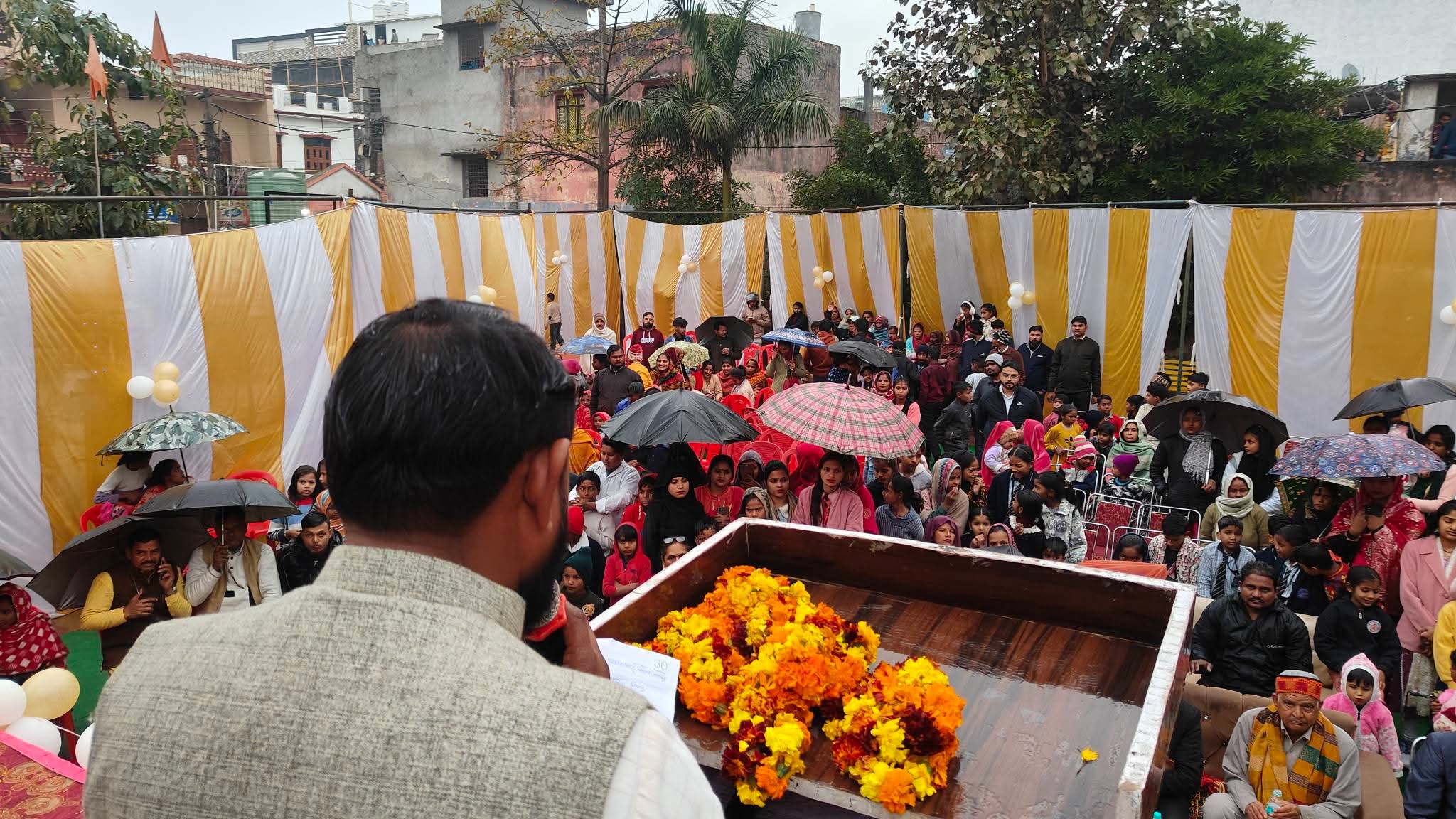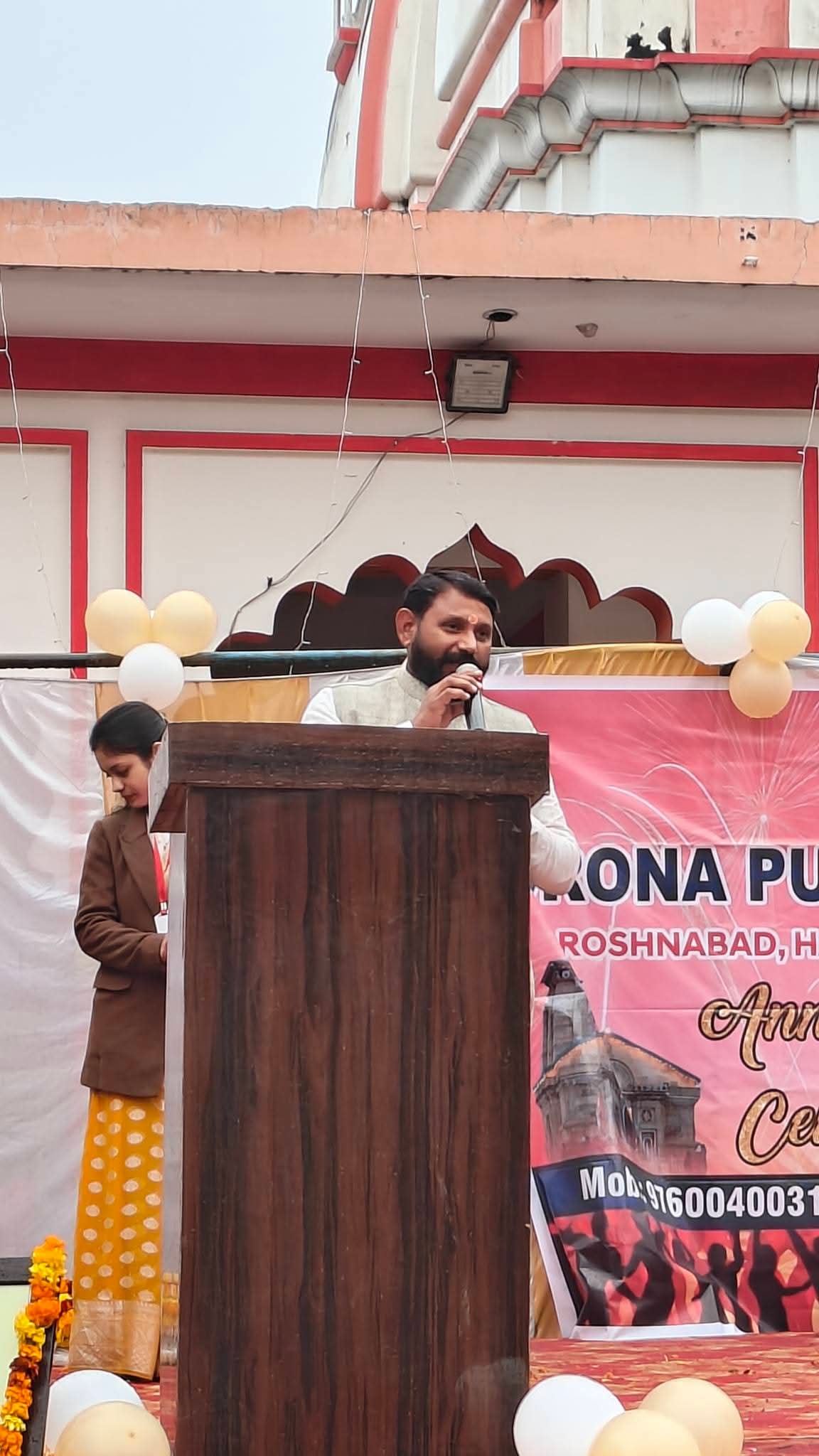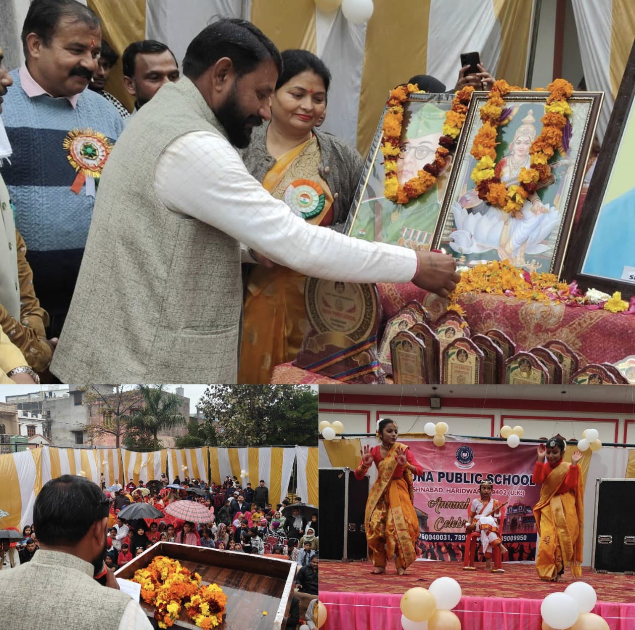 (शहजाद अली हरिद्वार) हरिद्वार। विधानसभा क्षेत्र 26 बीएचईएल रानीपुर स्थित प्रेमलाल पोखरियाल एजुकेशन सोसाइटी द्वारा संचालित द्रोण पब्लिक स्कूल, रोशनाबाद में वार्षिक उत्सव का भव्य आयोजन किया गया। कार्यक्रम में ऑल इंडिया धनगर समाज के प्रदेश अध्यक्ष मनोज धनगर मुख्य अतिथि के रूप में शामिल हुए। उन्होंने दीप प्रज्ज्वलित कर सांस्कृतिक कार्यक्रमों का शुभारंभ किया।घने बादलों और मंद-मंद वर्षा के बीच आयोजित इस वार्षिक उत्सव में विद्यालय के छोटे-छोटे बच्चों द्वारा प्रस्तुत सांस्कृतिक कार्यक्रमों ने सभी का मन मोह लिया। बारिश के बावजूद बच्चों का आत्मविश्वास, अभिभावकों की सहभागिता और स्कूल प्रबंधन का उत्साह देखने योग्य रहा। बच्चों की रंगारंग प्रस्तुतियों पर उपस्थित अतिथियों एवं दर्शकों ने तालियों से उनका उत्साहवर्धन किया।मुख्य अतिथि मनोज धनगर ने अपने संबोधन में कहा कि ऐसे आयोजन बच्चों के सर्वांगीण विकास में महत्वपूर्ण भूमिका निभाते हैं। उन्होंने बच्चों को उज्ज्वल भविष्य के लिए शुभकामनाएं दीं और विद्यालय प्रबंधन के प्रयासों की सराहना की।कार्यक्रम में आमंत्रण के लिए स्कूल संस्थापक श्री संपत लाल पोखरियाल एवं श्री सुरेंद्र पोखरियाल, तथा स्कूल प्रबंधक श्री नवीन पोखरियाल का आभार व्यक्त किया गया।इस अवसर पर भाई बिंदर पाल धनगर, रविंद्र पाल धनगर, मुकेश पाल धनगर, योग शिक्षक राकेश पाल धनगर, पवन पाल धनगर एवं संजीव पाल धनगर सहित अन्य गणमान्य लोग उपस्थित रहे।