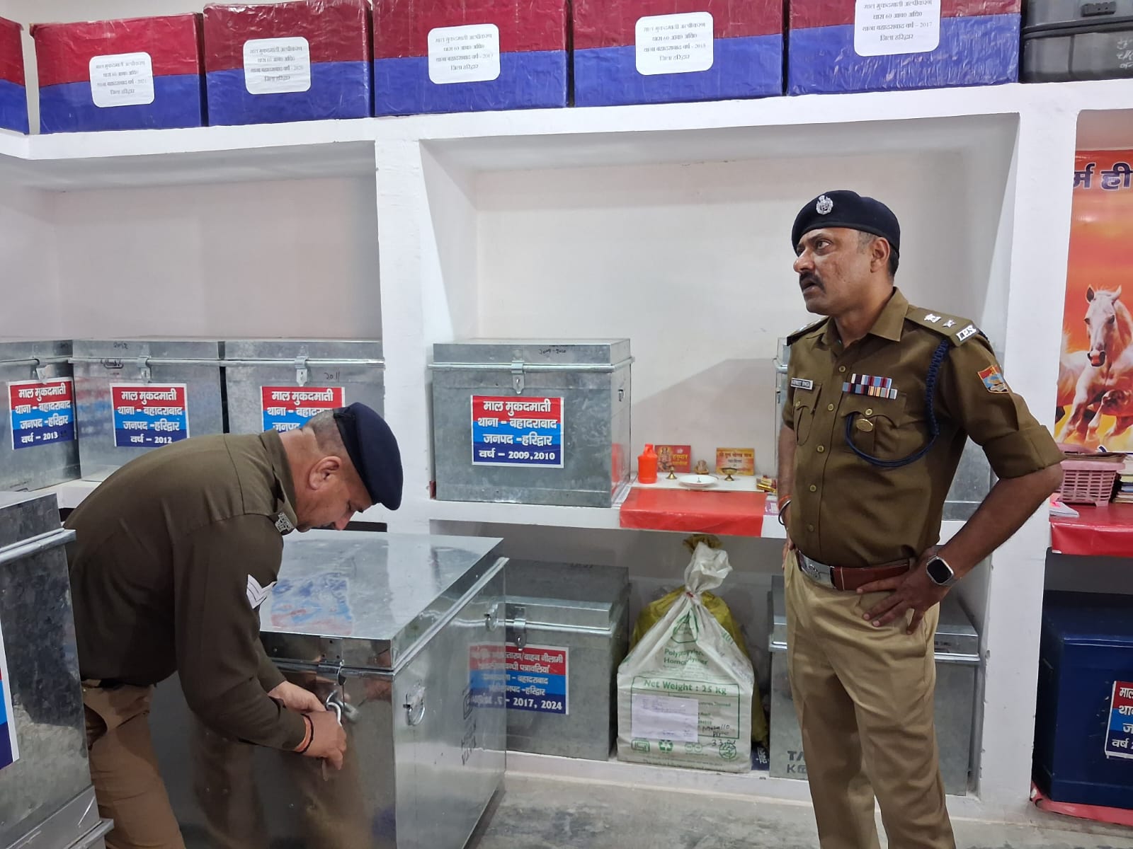 मालखाने में मुकदमें से संबंधित मालों का काफी लम्बे समय से लम्बित होने पर प्रभारी निरीक्षक को निर्देशित किया गया कि वह इसमें कमेटी गठित करने हेतु आज ही से आवश्यक कार्यवाही करेंगे तथा 15 दिवस के भीतर इन्हे निस्तारण करवाया जाये।