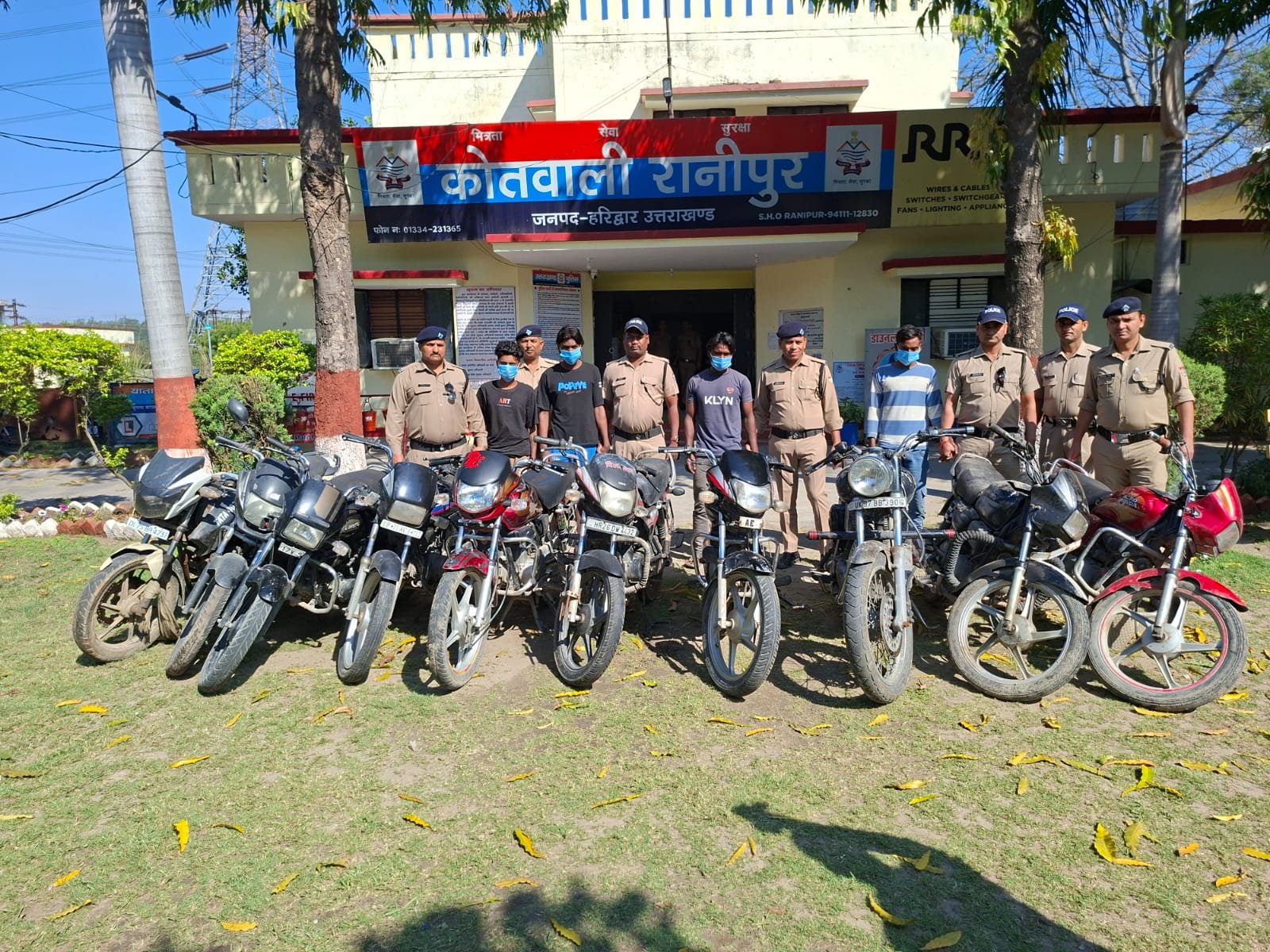 पुलिस के अनुसार आरोपी लंबे समय से इस गिरोह के रूप में सक्रिय थे। पुलिस ने बताया कि आरोपियों के कब्जे से कुल 10 मोटरसाइकिलें बरामद की गई हैं, जिनमें रानीपुर, सिडकुल, फरीदाबाद और दिल्ली क्षेत्र से चोरी की गई बाइकें शामिल हैं।