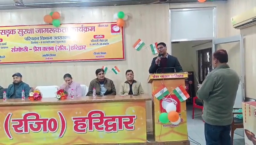 (शहजाद अली हरिद्वार)हरिद्वार। प्रेस क्लब हरिद्वार में सड़क दुर्घटनाओं पर प्रभावी अंकुश लगाने और आमजन को यातायात नियमों के प्रति जागरूक करने के उद्देश्य से सड़क सुरक्षा जागरूकता कार्यक्रम के तहत परिवहन विभाग द्वारा संगोष्ठी का आयोजन किया गया।