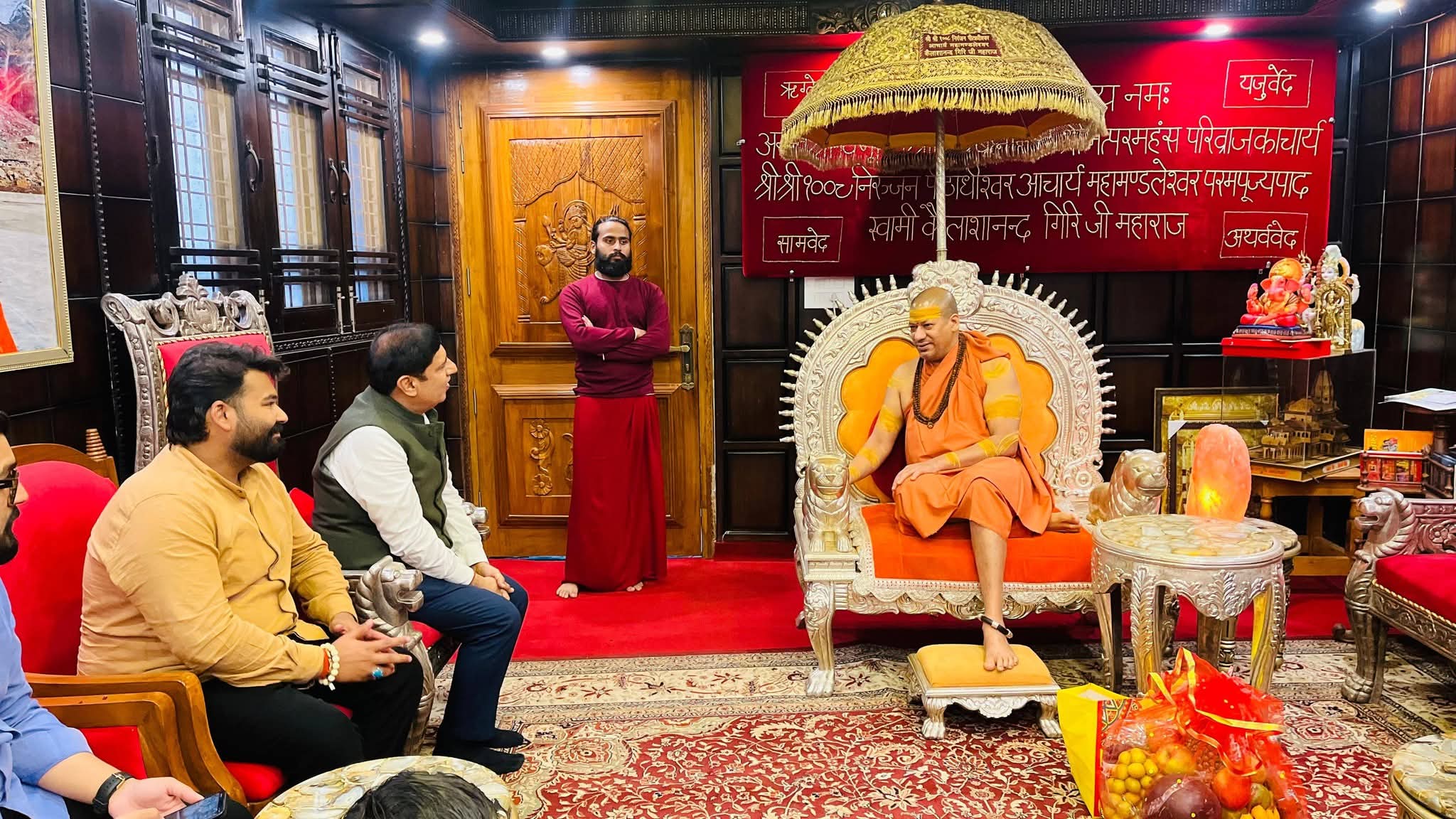 इस दौरान मंत्री बत्रा ने महाराज से स्नेहिल भेंटवार्ता करते हुए उनका आशीर्वाद एवं आध्यात्मिक मार्गदर्शन प्राप्त किया। भेंट के दौरान धर्म, समाज सेवा एवं जनकल्याण से जुड़े विभिन्न विषयों पर चर्चा हुई। स्वामी कैलाशानंद गिरी जी महाराज ने मंत्री को सदैव जनसेवा एवं समाज हित में कार्य करने का आशीर्वाद दिया।