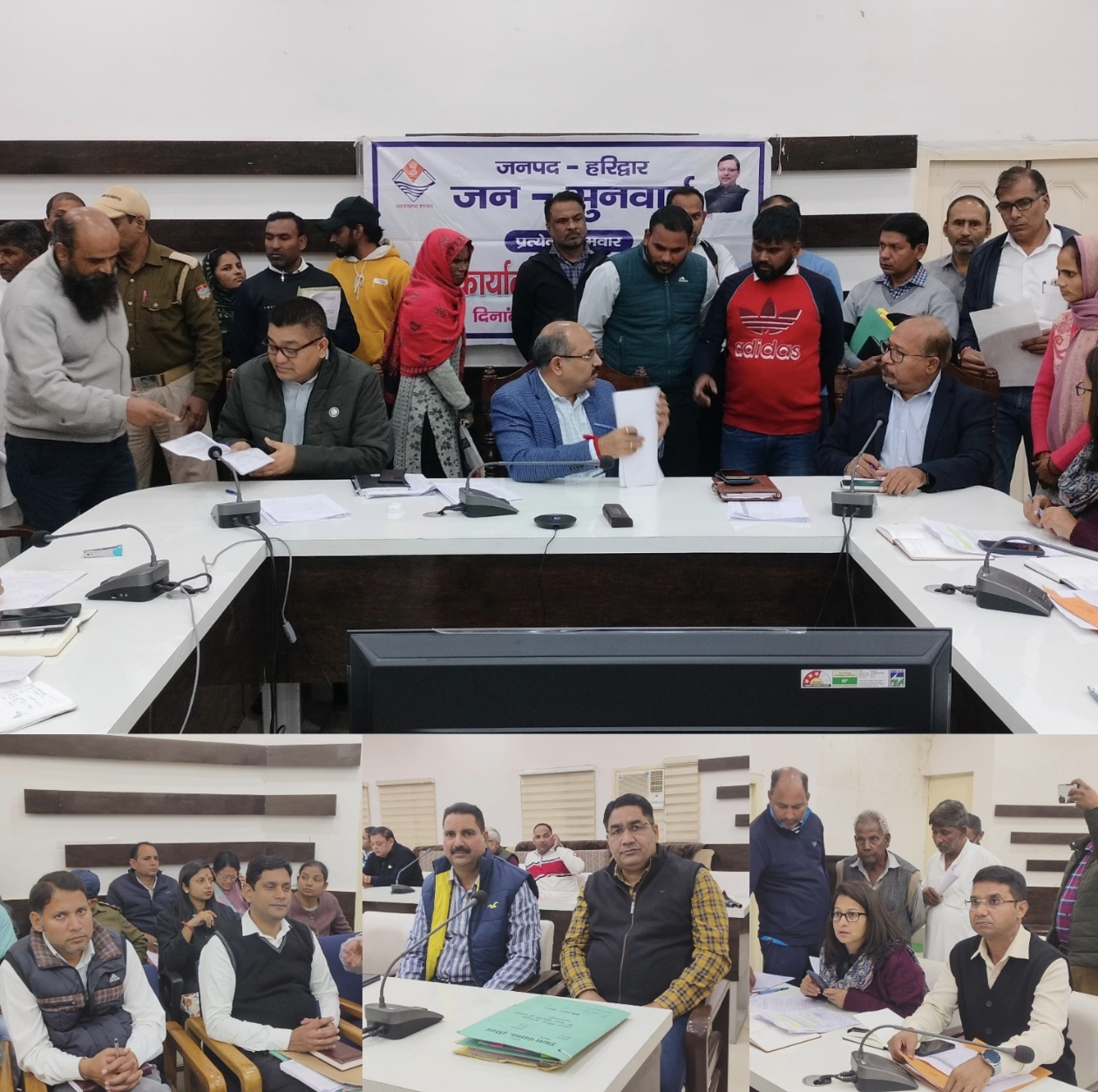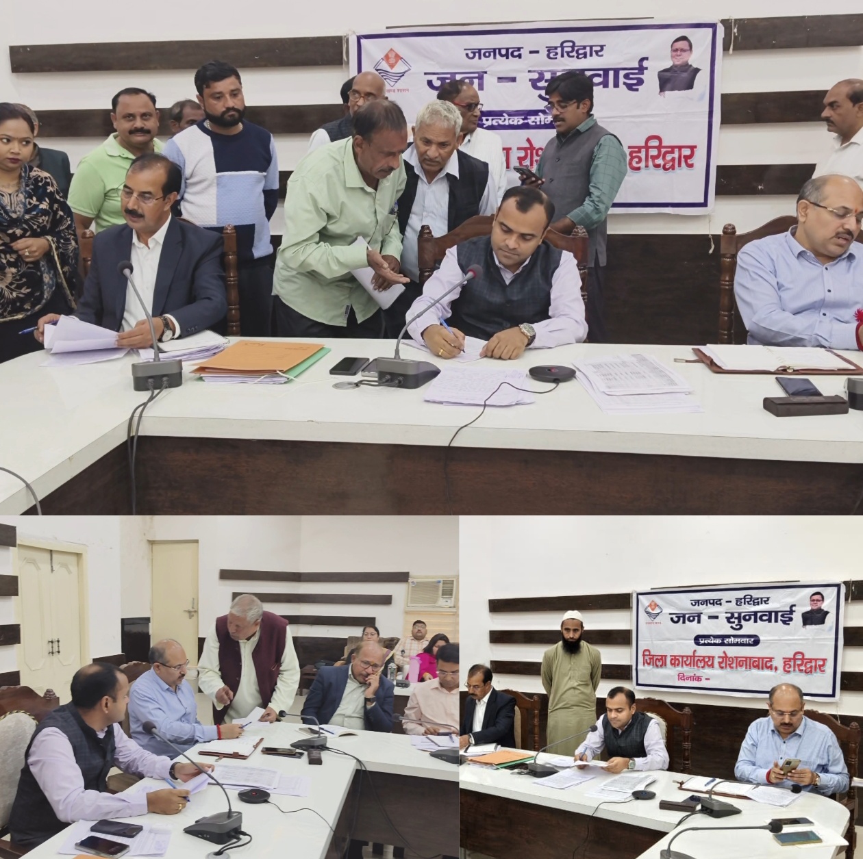 (शहजाद अली हरिद्वार)हरिद्वार। जनपदवासियों की समस्याओं का त्वरित निराकरण करने के उद्देश्य से जिलाधिकारी के निर्देशन में मुख्य विकास अधिकारी ललित नारायण मिश्र की अध्यक्षता में जिला कार्यालय सभागार में जन सुनवाई कार्यक्रम आयोजित किया जा रहा है, जिसमें विभिन्न विभागों से संबंधित 57 शिकायतकर्ताओं ने अपनी समस्याएं दर्ज कराई गई जिसमें 32 समस्याओं का