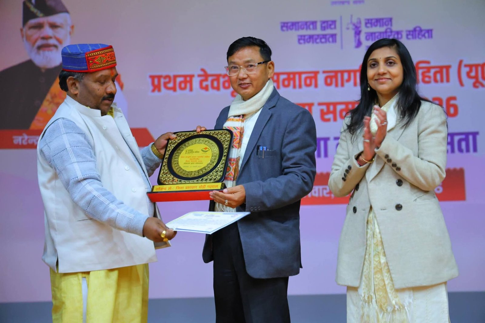 (शहजाद अली हरिद्वार)पौड़ी । यूसीसी के एक वर्ष पूर्ण होने के अवसर पर जनपद पौड़ी में एक भव्य कार्यक्रम का आयोजन किया गया। इस अवसर पर मुख्यमंत्री पुष्कर सिंह धामी ने वर्चुअल माध्यम से प्रतिभाग करते हुए जनपदवासियों को यूसीसी दिवस की शुभकामनाएँ दीं।मुख्यमंत्री ने अपने संबोधन में कहा कि यह गर्व का विषय है कि समान नागरिक संहिता का यह कानून केवल घोषणा तक सीमित नहीं रहा, बल्कि प्रभावी रूप से धरातल पर लागू होकर जनकल्याण का माध्यम बना है। इसके माध्यम से सरकारी सेवाओं तक जनता की पहुँच को अधिक सरल, पारदर्शी और न्यायसंगत बनाया गया है। भारतीय संस्कृति के मूल में निहित समानता, सामाजिक न्याय और बंधुत्व के मूल्यों को यह कानून सशक्त करता है, क्योंकि एक सशक्त और समरस समाज के लिए सभी नागरिकों हेतु समान कानून आवश्यक है। समान नागरिक संहिता महिलाओं को न्याय, सम्मान और आगे बढ़ने के समान अवसर प्रदान कर समाज को नई दिशा देने का कार्य करेगी।संस्कृति विभाग के प्रेक्षागृह में आयोजित कार्यक्रम का शुभारंभ मुख्य अतिथि विधायक पौड़ी राजकुमार पोरी तथा जिलाधिकारी स्वाति एस. भदौरिया द्वारा दीप प्रज्ज्वलन कर किया गया। कार्यक्रम में अतिथियों का स्वागत पुष्पगुच्छ भेंट कर किया गया। संस्कृति विभाग की ओर से स्वागत गीत प्रस्तुत किया गया, जबकि जिला पंचायतीराज अधिकारी जितेंद्र कुमार ने स्वागत उद्बोधन देते हुए अवगत कराया कि यूसीसी दिवस के अवसर पर जनपद के समस्त विकासखंडों में विभिन्न कार्यक्रम आयोजित किए जा रहे हैं।खंड विकास अधिकारी दृष्टि आनंद ने यूसीसी को अधिकार के रूप में जन-जन तक पहुँचाने के लिए सभी की सहभागिता की अपील की। कार्यक्रम के दौरान यूसीसी पर आधारित एक लघु फिल्म का प्रदर्शन किया गया, जिसमें इसके उद्देश्य, महत्व एवं प्रावधानों की संक्षिप्त जानकारी दी गई।सांस्कृतिक कार्यक्रमों की कड़ी में हेमंती सिंह द्वारा “हम उत्तराखंडी छा” गीत की प्रस्तुति दी गई। इसके साथ ही विद्यालय स्तर पर आयोजित निबंध, चित्रकला एवं वाद-विवाद प्रतियोगिताओं में प्रथम, द्वितीय एवं तृतीय स्थान प्राप्त करने वाले विद्यार्थियों को पुरस्कार प्रदान किए गए। जिला स्तर पर उत्कृष्ट कार्य करने वाली ग्राम पंचायतों एवं कर्मचारियों को भी सम्मानित किया गया। साथ ही जनपद के प्रथम यूसीसी पंजीकरणकर्ता दंपत्ति अंकित एवं रिंकी तड़ियाल को विशेष रूप से सम्मान प्रदान किया गया।