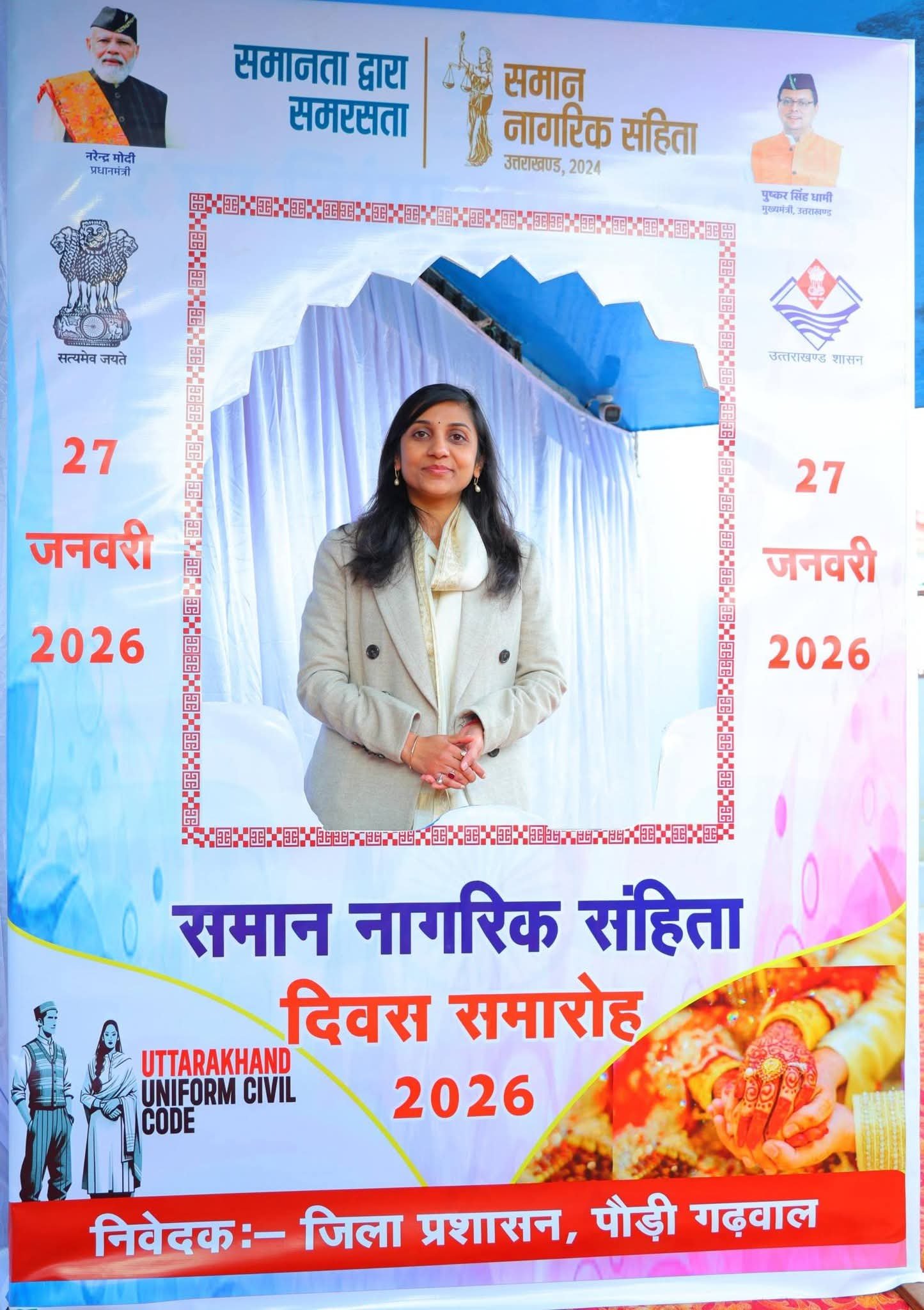 जिलाधिकारी ने उपस्थित जनसमूह का स्वागत करते हुए कहा कि कभी समान नागरिक संहिता केवल एक आदर्श कल्पना प्रतीत होती थी, जिसे भारत जैसे विविधतापूर्ण देश में लागू करना कठिन माना जाता था। उन्होंने बताया कि उत्तराखण्ड में यह कार्य मात्र तीन वर्षों में दृढ़ इच्छाशक्ति और सामूहिक प्रयास से पूर्ण किया गया। उन्होंने कहा कि जनपद पौड़ी की 1166 ग्राम पंचायतों में से 835 पंचायतों में कार्य शत-प्रतिशत पूर्ण होना एक बड़ी उपलब्धि है। उन्होंने सभी अधिकारियों, कर्मचारियों और जनप्रतिनिधियों के सहयोग की सराहना करते हुए कहा कि इच्छाशक्ति और टीमवर्क से असंभव भी संभव हो जाता है, और आज उत्तराखण्ड देश का पहला राज्य बनकर इतिहास रच चुका है। उन्होंने बताया कि पौड़ी जनपद में वर्तमान तक यूसीसी में 43784 पंजीकरण पूर्ण हो चुके हैं।