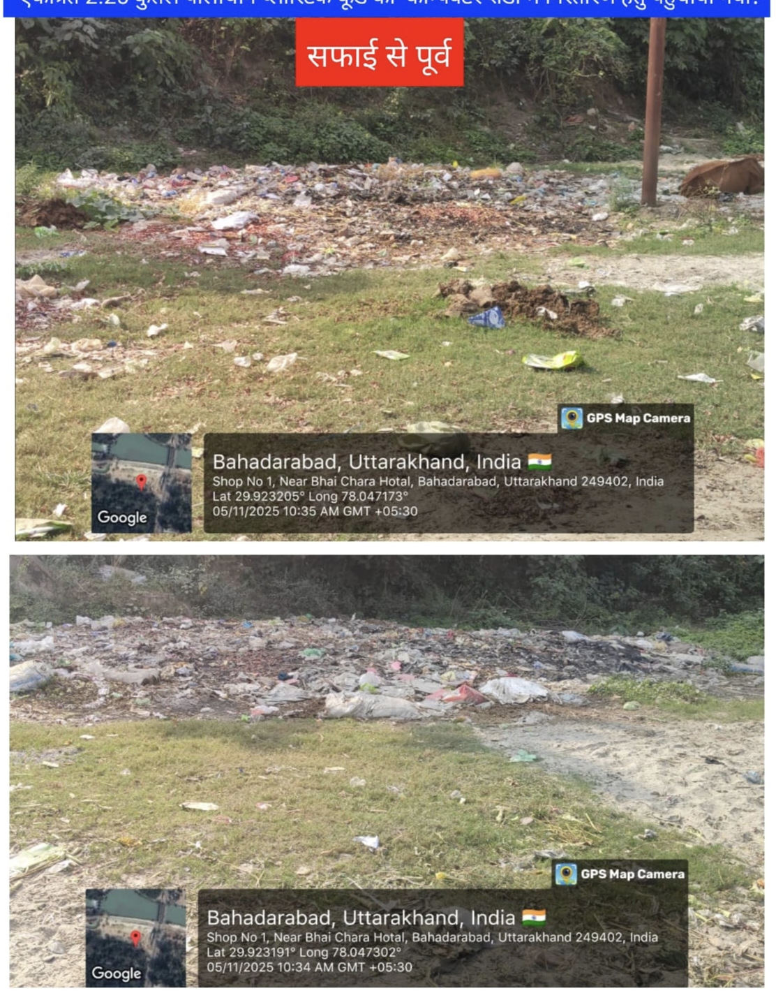 जिलाधिकारी हरिद्वार के निर्देशानुसार यह अभियान जनपद के विभिन्न ग्रामीण क्षेत्रों में प्रभावी रूप से संचालित किया जा रहा है। इसी क्रम में आज दिनांक 05 नवम्बर 2025 को हरिद्वार जिला पंचायत द्वारा ग्रामीण बाजार बहादराबाद एवं सलेमपुर क्षेत्र में विशेष स्वच्छता अभियान चलाया गया।