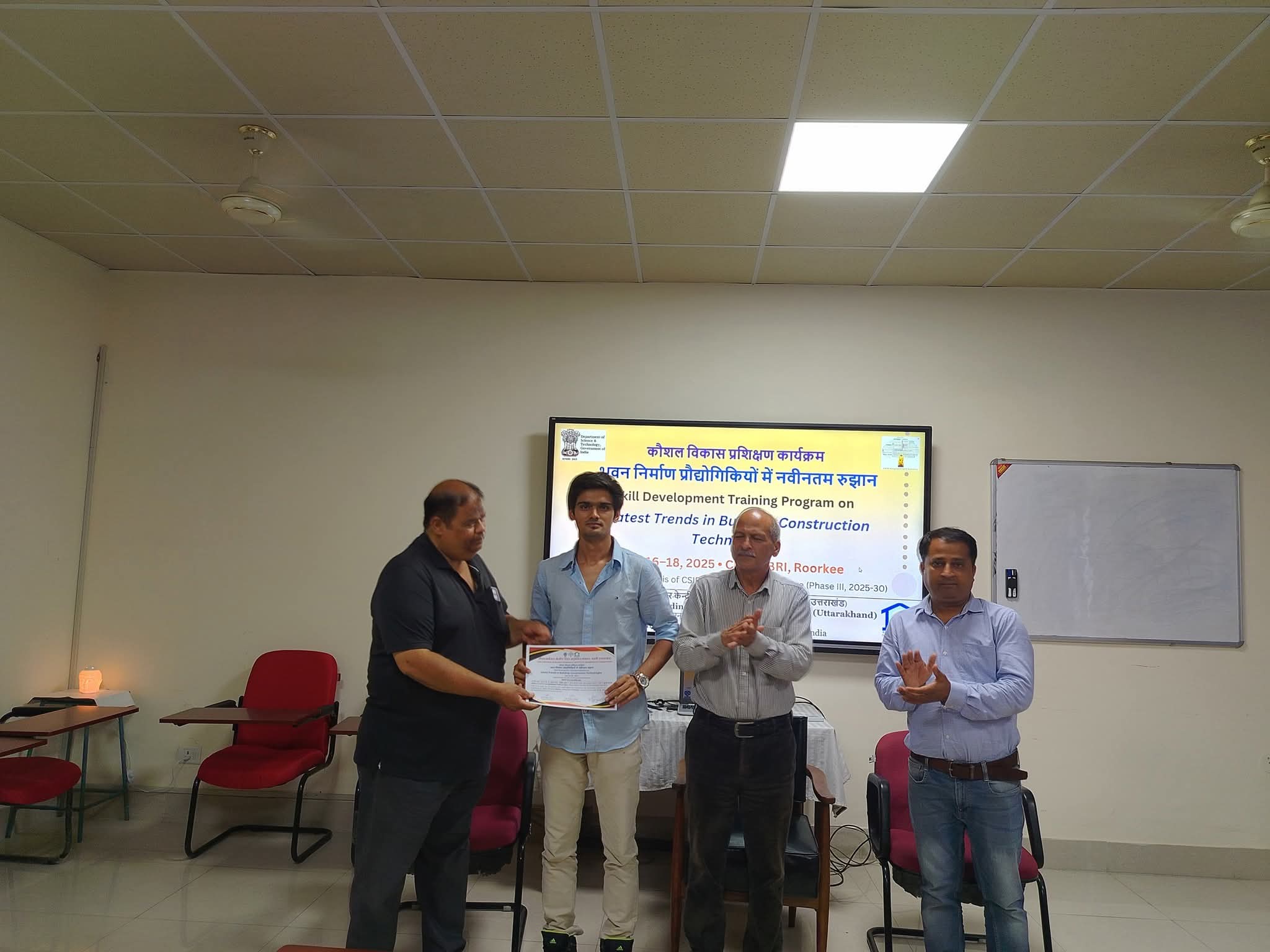 (शहजाद अली हरिद्वार)रुड़की, 18 जुलाई 2025: सीएसआईआर-केंद्रीय भवन अनुसंधान संस्थान (सीबीआरआई), रुड़की द्वारा आयोजित तीन दिवसीय राष्ट्रीय प्रशिक्षण कार्यक्रम “भवन निर्माण प्रौद्योगिकियों में नवीनतम प्रवृत्तियाँ” का समापन शुक्रवार को संस्थान परिसर में उत्साहपूर्वक संपन्न हुआ।