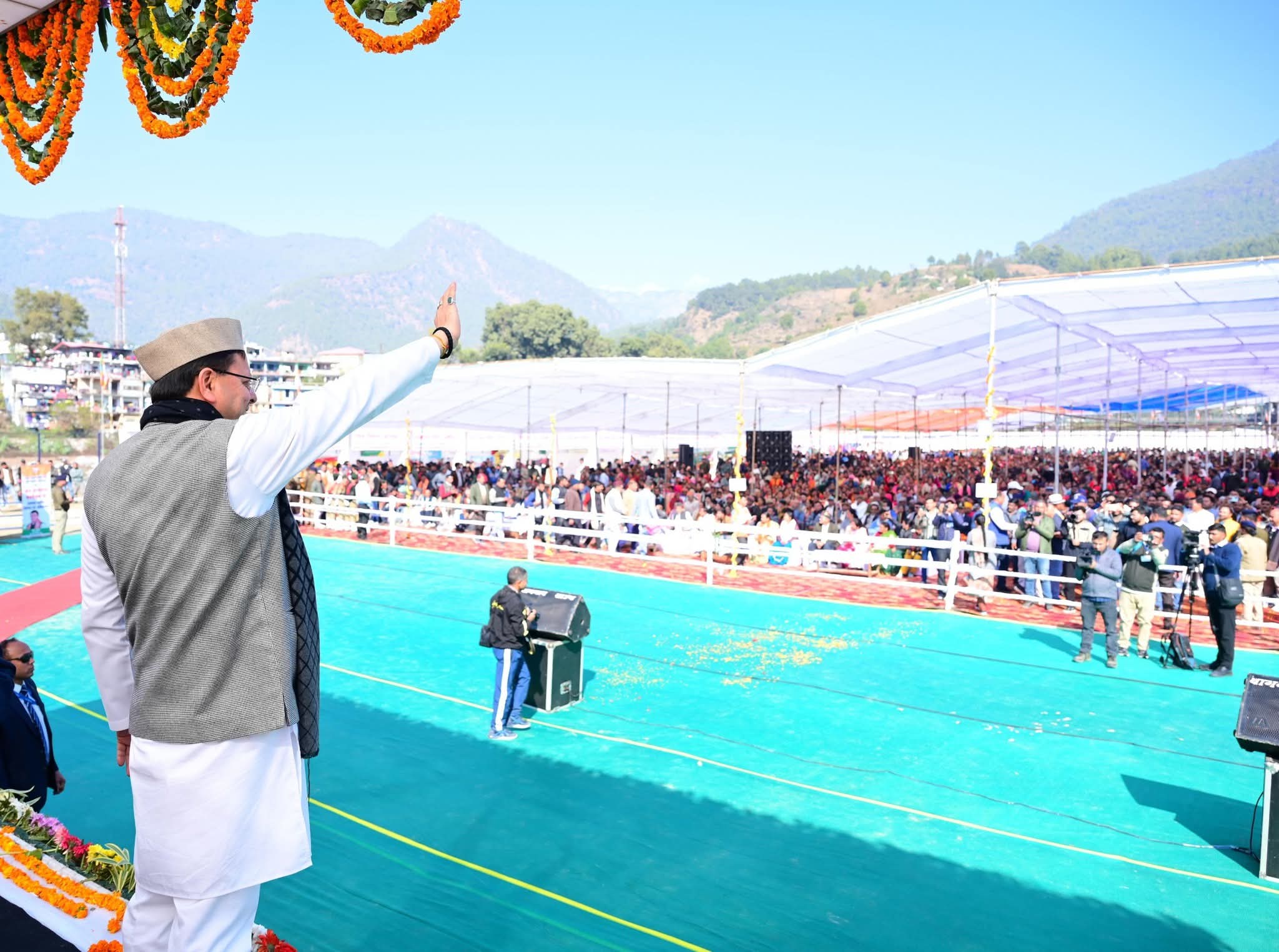 अपने संबोधन में मुख्यमंत्री श्री धामी ने कहा कि जनता की विशाल उपस्थिति इस बात का प्रमाण है कि राज्य सरकार विकास के सही मार्ग पर कार्य कर रही है।