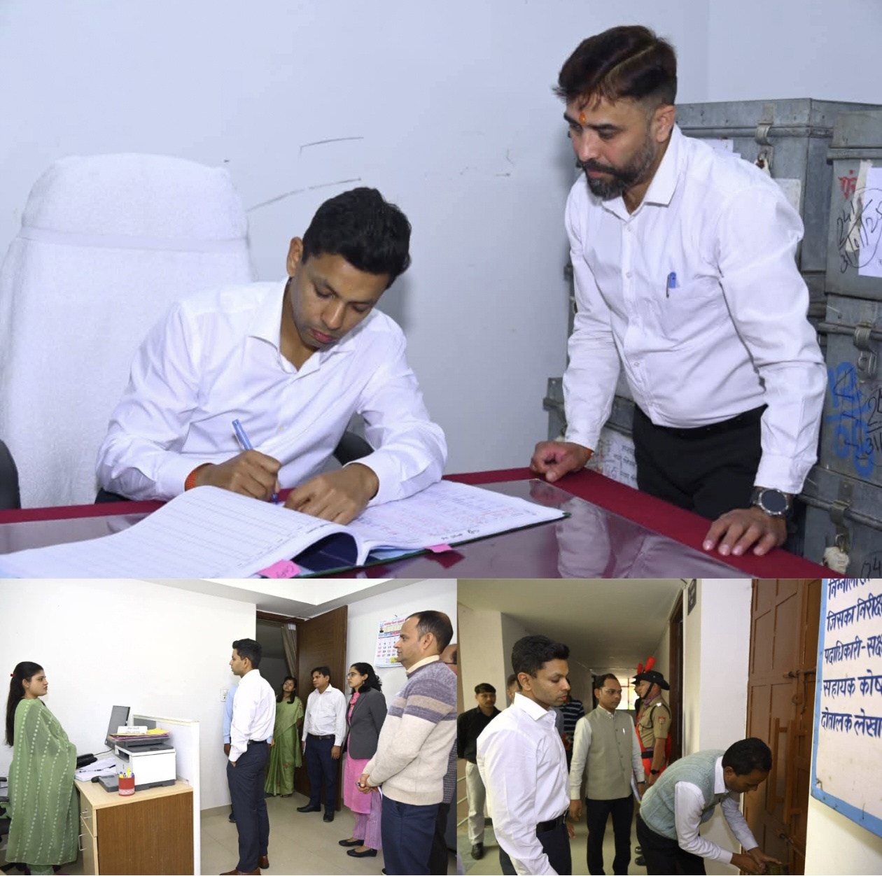 और सम्बन्धित पटल सहायकों से जानकारी ली। निरीक्षण के दौरान जिलाधिकारी ने शिकायत कक्ष, भूमि अध्यापित कक्ष, जिला विकास प्राधिकारण,स्टाम्प कक्ष, जनाधार कक्ष, भूमि अभिलेख कक्ष, अभिलेखाकार राजस्व अभिलेख एवं निर्वाचन कार्यालय सहित अन्य पटलों का निरीक्षण किया।