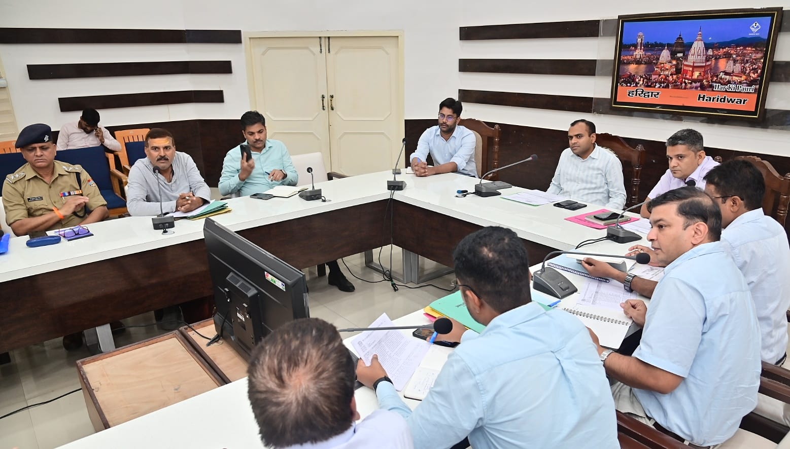 हरकी पौड़ी क्षेत्र में नियमों का सख्ती से पालन कराने और अवैध दुकानों पर कार्रवाई सुनिश्चित करने को कहा गया।