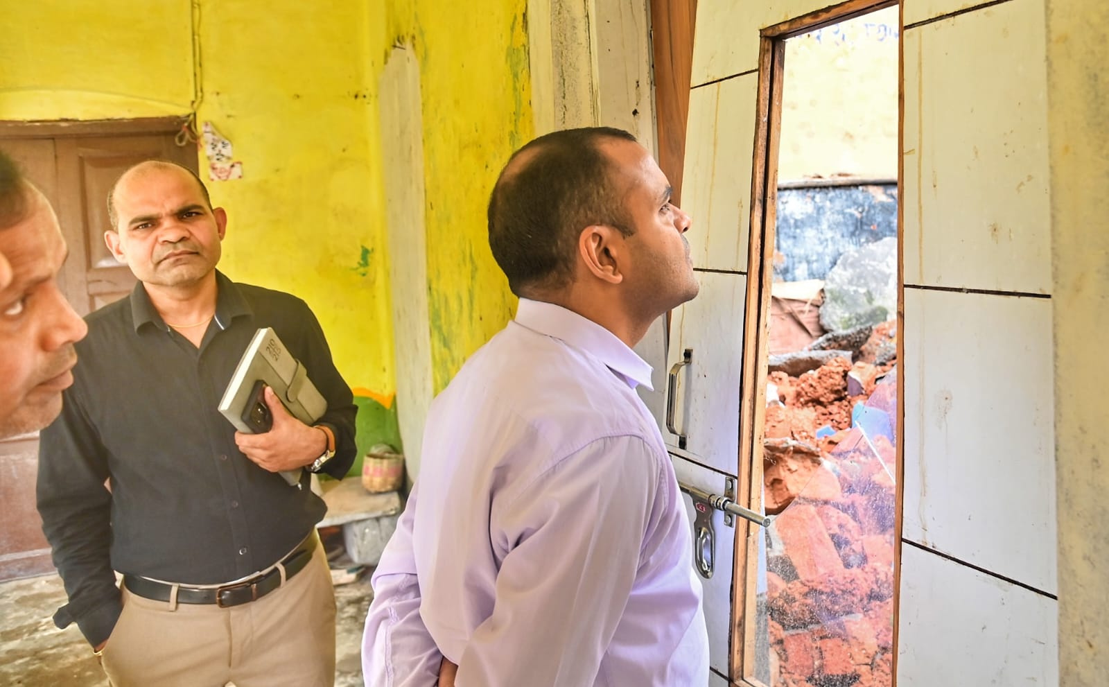 निरीक्षण के दौरान जिलाधिकारी ने पाया कि विद्यालय भवन काफी पुराना है एवं जीर्णशीर्ण अवस्था में है जिसमें एक बंद पड़े कैमरे की दीवार कुछ दिन पूर्व क्षतिग्रस्त हो गई थी।