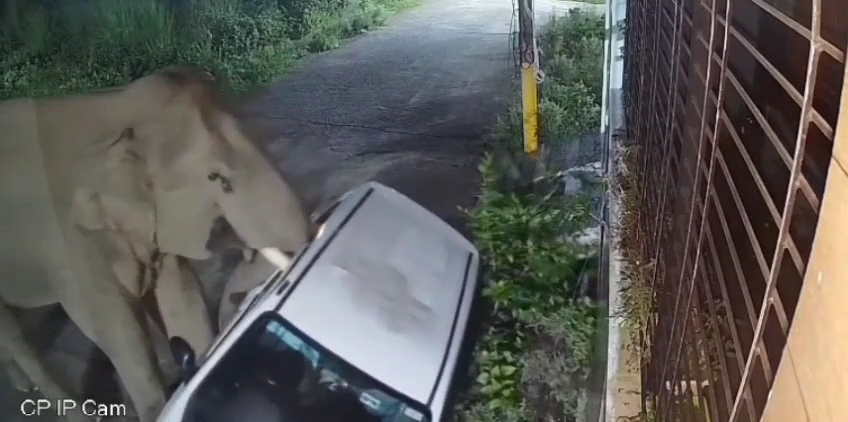 बिना रोक-टोक के कॉलोनी में प्रवेश कर हाथी ने कीमती सामान क्षतिग्रस्त कर दिए।