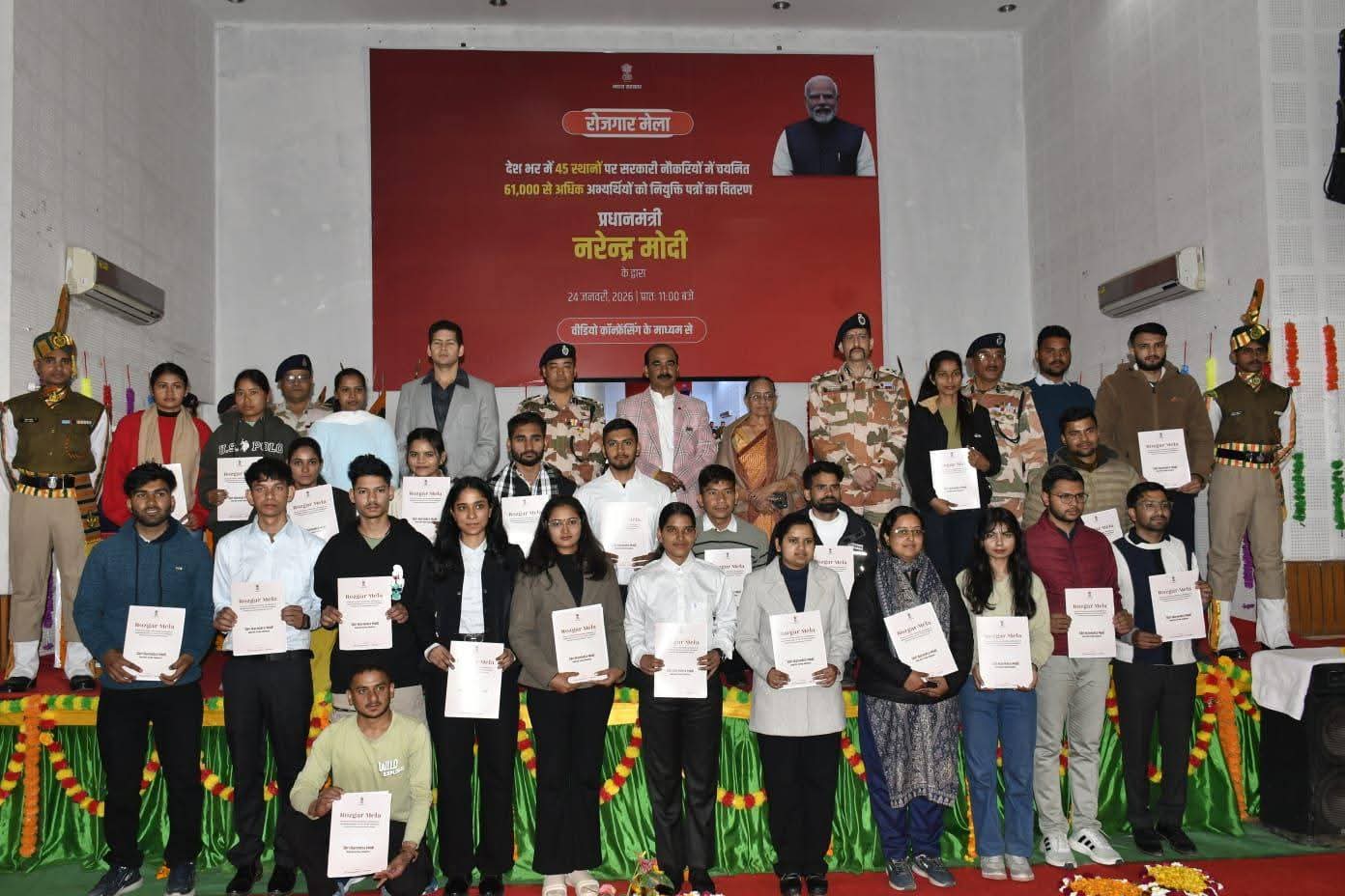 (शहजाद अली हरिद्वार)देहरादून। शनिवार को भारत तिब्बत सीमा पुलिस बल, सीमाद्वार देहरादून में “रोजगार मेला 2026” का आयोजन किया गया। समारोह में मुख्य अतिथि के तौर पर केन्द्रीय राज्य मंत्री, सड़क परिवहन एवं राजमार्ग मंत्रालय श्री अजय टम्टा शामिल हुए।समारोह के दौरान केन्द्रीय राज्य मंत्री अजय टम्टा ने अपने सम्बोधन में कहा कि आज समस्त भारत वर्ष के विभिन्न राज्यों एवं केन्द्र शासित प्रदेशों के 45 केन्द्रों पर विकसित भारत के संकल्प को साकार करने के उद्देश्य के साथ रोजगार मेले का आयोजन किया गया है। जिसमें 61 हजार युवाओं को नियुक्ति पत्र वितरित किये गए। युवाओं को रोज़गार देने के लक्ष्य की प्राप्ती हेतु इस तरह के रोज़गार मेलों के आयोजनों की शुरुआत की गई है। उन्होंने कहा कि चयनित युवाओं को प्रशिक्षण दिया जायेगा और उसके बाद उनकी तैनाती होगी।रोजगार मेले के माध्यम से भारत तिब्बत सीमा पुलिस बल के सीमाद्वार कैम्प में विभिन्न केन्द्रीय सशस्त्र पुलिस बल एवं अन्य संगठनों जैसे कि भारत तिब्बत सीमा पुलिस बल, सीमा सुरक्षा बल, केन्द्रीय रिजर्व पुलिस बल, केन्द्रीय औद्योगिक सुरक्षा बल, सशस्त्र सीमा बल, असम राइफल्स, डी.एफ.एस., एफ.एस.आई. अखिल भारतीय आयुर्विज्ञान संस्था (ऋषिकेश) एवं इसरो में चयनित 253 युवाओं को नियुक्ति पत्र वितरित किए गए। इससे पहले प्रधानमंत्री श्री नरेंद्र मोदी द्वारा वर्चुअल माध्यम से युवाओं को उनकी नियुक्ति पर शुभकामनाएं एवं बधाई भी दी गईं।
