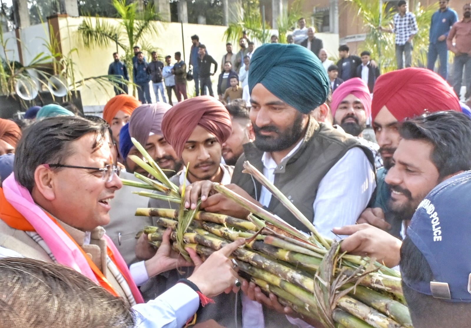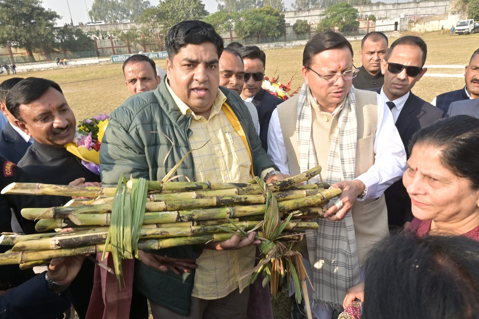 किसानों, जनप्रतिनिधियों तथा स्थानीय अधिकारियों ने फूलों की माला पहनाकर, पुष्पवर्षा कर और गन्ना भेंट कर मुख्यमंत्री का अभिनंदन किया। उपस्थित किसानों ने सम्मान स्वरूप उन्हें “किसान पुत्र” की उपाधि से सम्मानित भी किया।