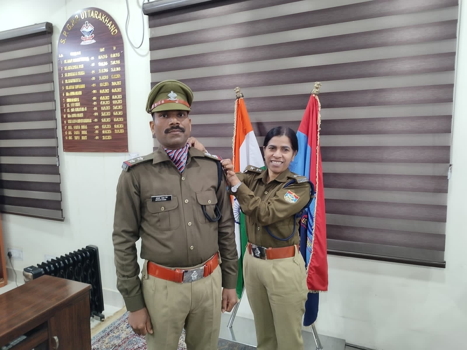 सेवा नियमावली में निहित प्रावधानों के तहत मुख्य आरक्षी से अपर उप निरीक्षक के पद पर प्रोन्नत हुए दो कर्मियों को औपचारिक रूप से नई जिम्मेदारी सौंपी गई। एसपी जीआरपी अरुणा भारती द्वारा थाना जीआरपी हरिद्वार में तैनात श्यामदास तथा थाना जीआरपी देहरादून में तैनात नरेन्द्र कुमार को दिनांक 02 जनवरी 2026 को कंधों पर स्टार बैच लगाकर सम्मानित किया गया।