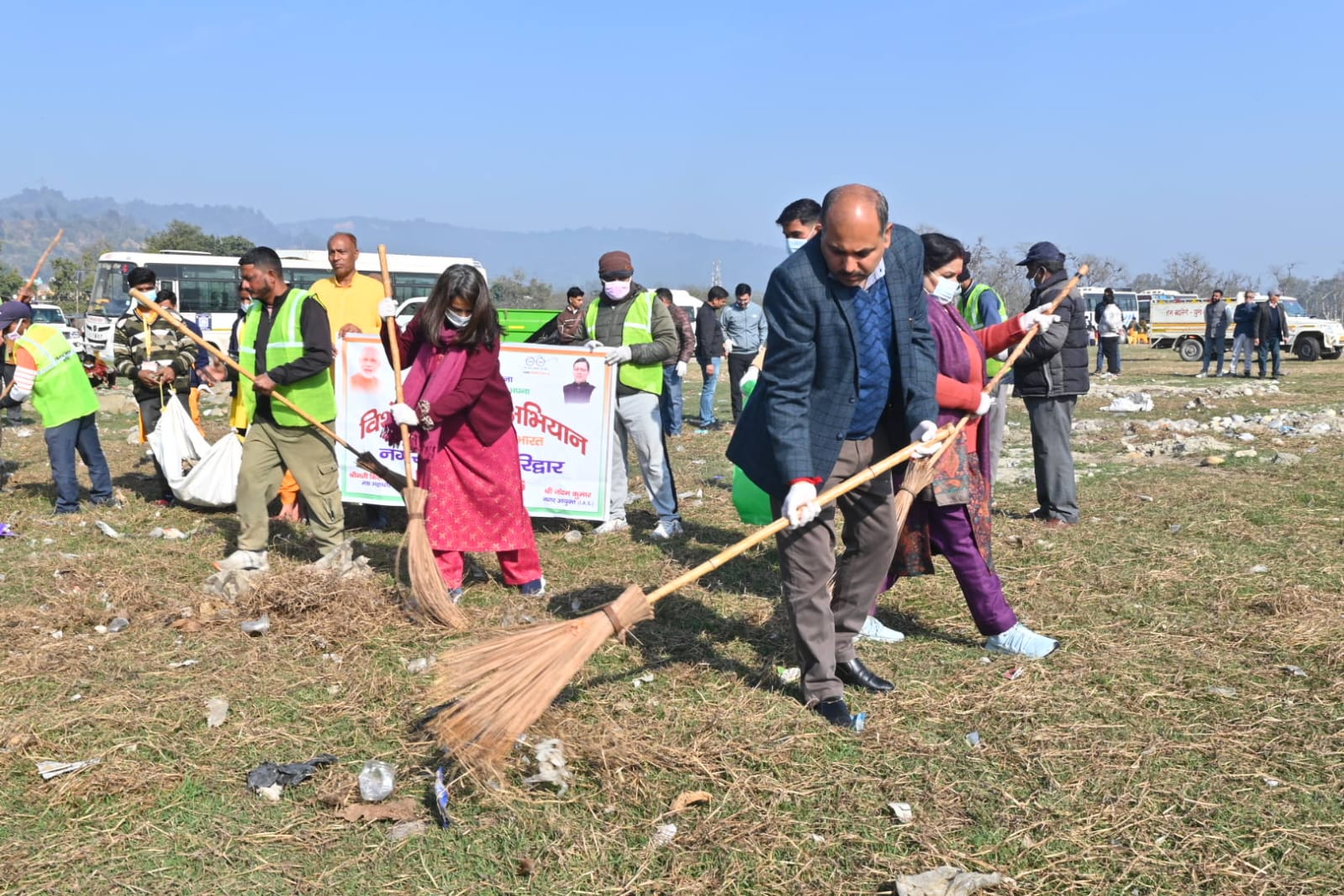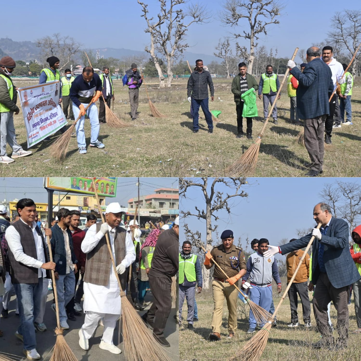 (शहजाद अली हरिद्वार)हरिद्वार। तीर्थ नगर जनपद हरिद्वार को साफ स्वच्छ सुन्दर एवं मॉडल जनपद बनाए जाने के लिए मुख्यमंत्री के निर्देशों के अनुपालन में एवं जिलाधिकारी मयूर दीक्षित के निर्देशन में जनपद में तीन माह से निरंतर सफाई अभियान चलाया जा रहा है।इस मुहिम में तेजी लाने के लिए जिलाधिकारी मयूर दीक्षित के निर्देशन में जनपद में आज एक दिन एक घंटा एक साथ थीम पर महा मेगा स्वच्छता अभियान चलाया गया।जिसका शुभारंभ आज मेयर नगर निगम किरण जैसल एवं जिलाधिकारी मयूर दीक्षित एवं पुलिस अधीक्षक प्रमेंद्र सिंह डोभाल,मुख्य विकास अधिकारी ललित नारायण मिश्रा ने संयुक्त रूप से पंतद्वीप मैदान (चमगादड़ टापू) से किया गया तथा जनपद में अपने अपने क्षेत्रों में जनप्रतिनिधियों द्वारा सफाया अभियान का शुभारंभ किया गया।इस सफाई अभियान में ओर तेजी लाने के लिए जनपद में आज महा मेगा स्वच्छता अभियान चलाया गया है,जिसमें अधिकारियों, कर्मचारियों,जनप्रतिनिधियों, सामाजिक संगठनों,धार्मिक संस्थानों,व्यापार मंडल, शिक्षण संस्थानों,स्वयं सेवी संगठनों,पुलिस विभाग,महिला समूह एवं ग्रामीणों के सहयोग से पूरे जनपद में स्वच्छता अभियान चलाया गया।उन्होंने सभी जनपदवासियों, पर्यटकों,श्रद्धालुओं से अपील की है कि कोई भी व्यक्ति सर्वजनिक स्थानों पर एवं अपने आस पास के क्षेत्रों में कूड़ा कचरा न फैंके तथा कूड़े कचरे को निर्धारित स्थलों पर लगाएं गए कूड़ा संग्रह केंद्र में ही डाले।