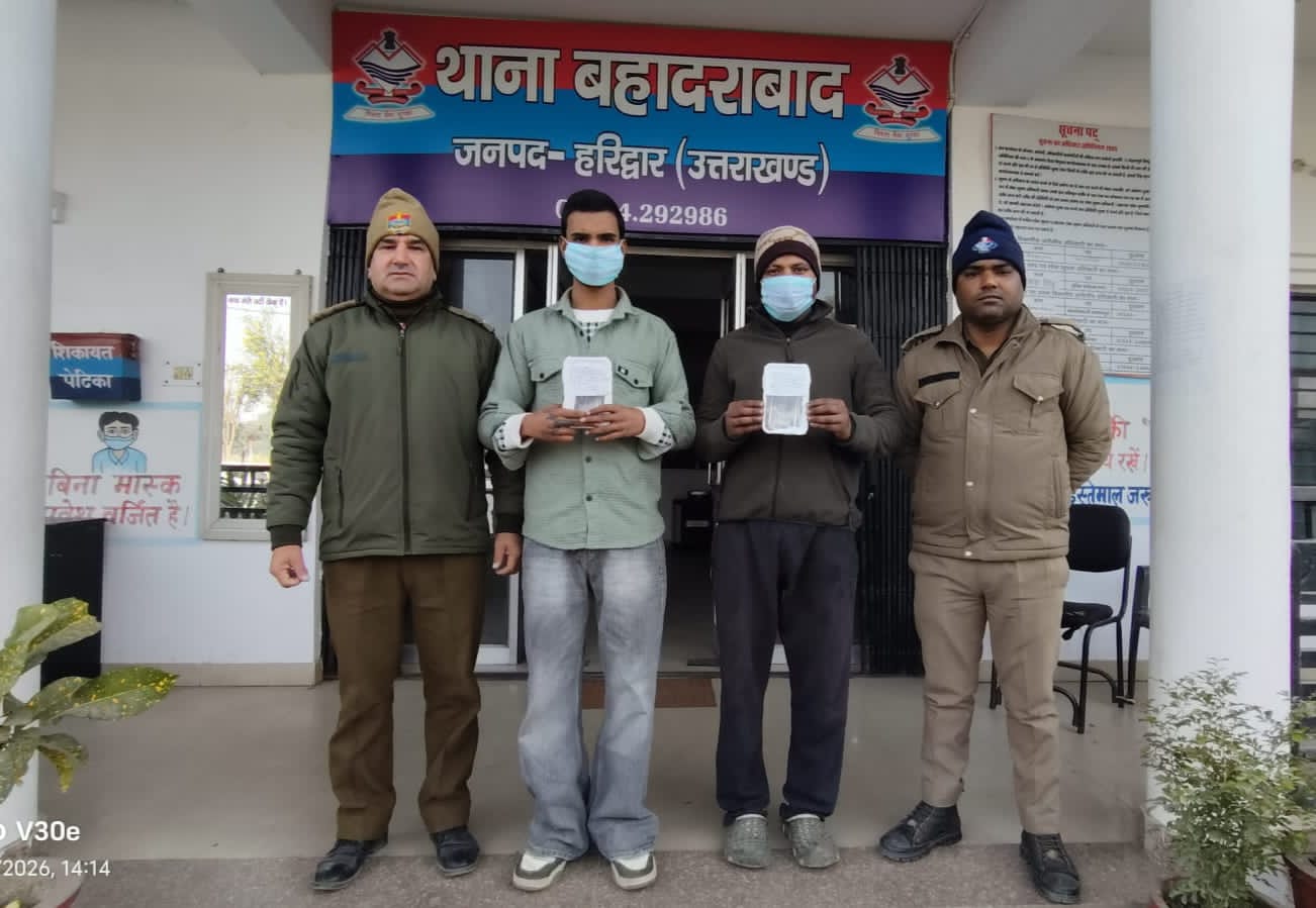 पुलिस टीम ने कड़ी मेहनत और लगातार दबिश के बाद आरोपितों को दबोचकर न्यायिक अभिरक्षा में जेल भेज दिया है। गिरफ्तार किए गए आरोपितों में श्रवण गिरि पुत्र रमेश गिरि, निवासी ग्राम दुगचाड़ा, थाना देवबंद, जिला सहारनपुर (वर्तमान पता दौलतपुर, बहादराबाद, हरिद्वार) तथा प्रणव पुत्र सुभाष सैनी, निवासी ग्राम धनौरा, थाना पिरान कलियर, जिला सहारनपुर शामिल हैं।