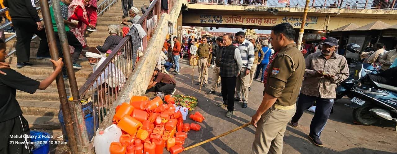 अपर मेलाधिकारी दयानंद सरस्वती ने अवगत कराया है कि हर की पौड़ी क्षेत्र को अतिक्रमण मुक्त करने के लिए वाल्मीकि मंदिर एवं नाई घाट पर लगाई गई अवैध दुकानों को जिला प्रशासन की टीम द्वारा हटाया गया ।
