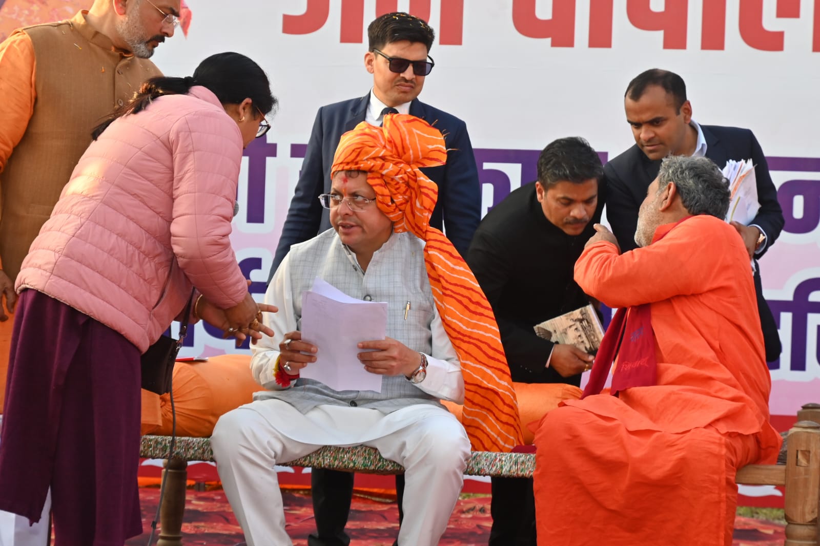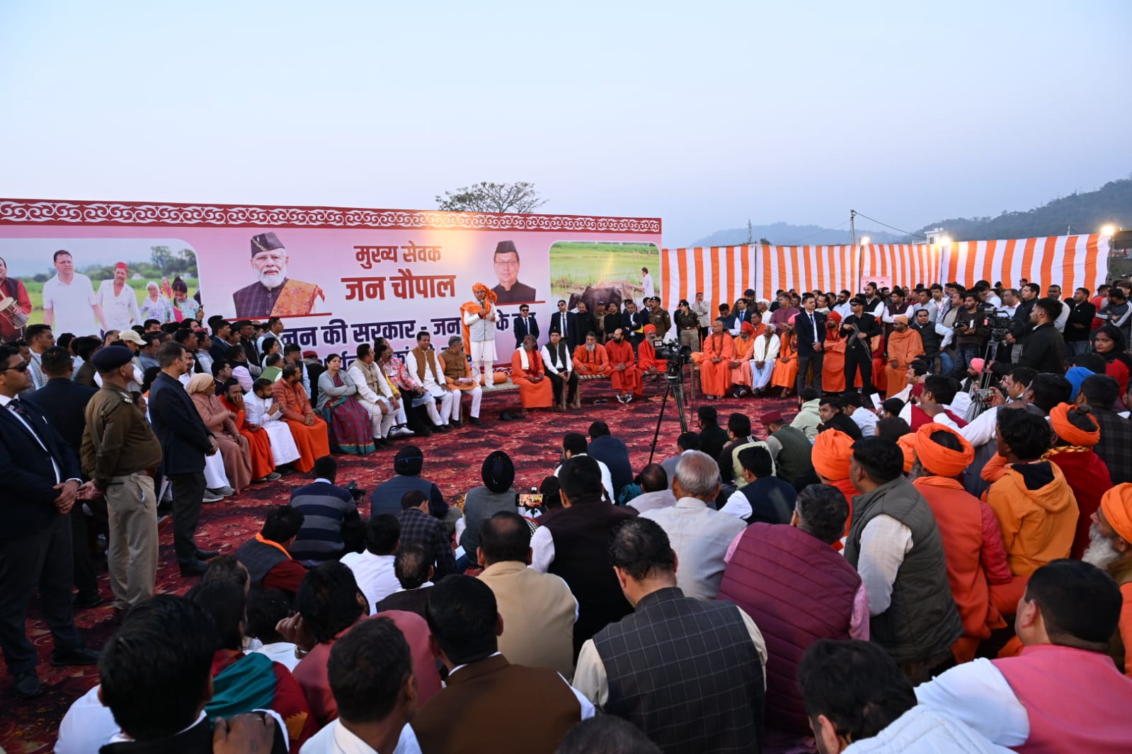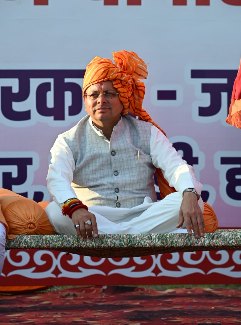 जिसमें पंच या मुखिया की भांति मुख्यमंत्री पुष्कर सिंह धामी को पगड़ी पहनाकर अपना सर्वमान्य बनाकर बैठाया। मुख्यमंत्री का यह अंदाज ग्रामीणों को बहुत ही भाया और देखने के लिए पीछे से आगे की ओर उमड़ पड़े।