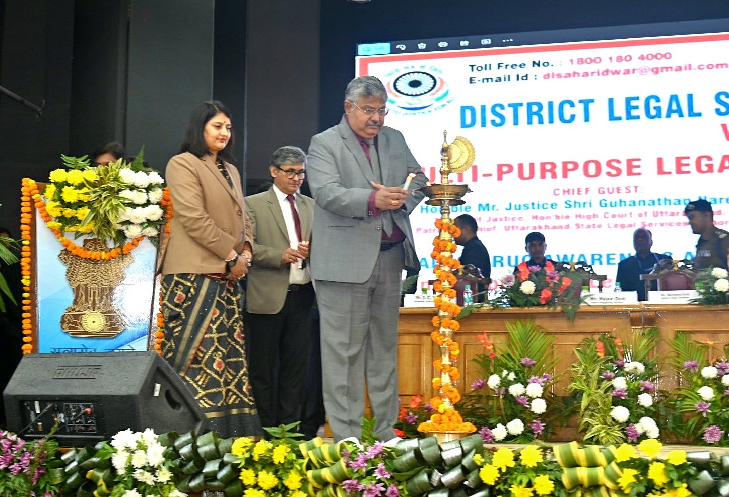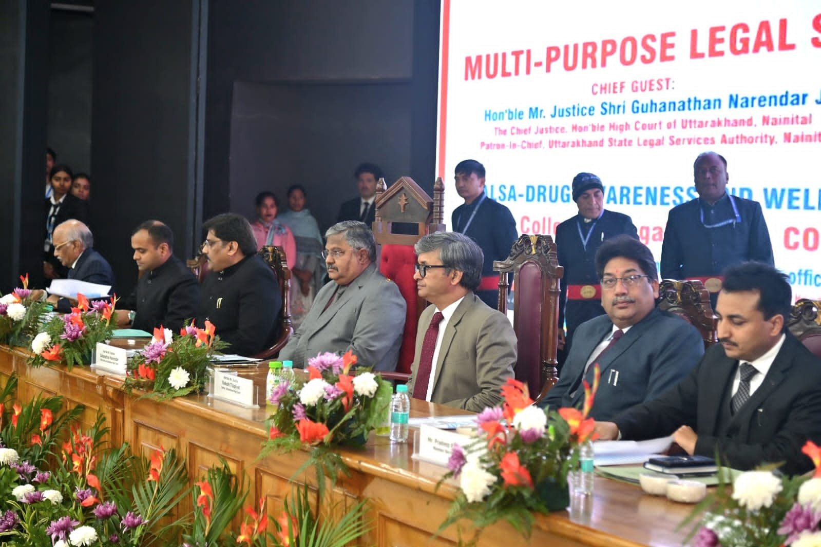 इस अवसर पर रजिस्ट्रार जनरल उत्तराखंड उच्च न्यायालय योगेश कुमार गुप्ता,न्यायधीश अजय कुमार चौधरी, एडिनेशनल डिस्ट्रिक्ट न्यायाधीश चंद्रमणि रॉय, प्रोटोकॉल विवेक श्रीवास्तव,भारत भूषण पांडे,योगेश्वर कुमार ,वरिष्ठ पुलिस अधीक्षक प्रमेंद्र डोभाल, सचिव जिला विधिक प्राधिकरण/सीनियर सिविल जज सिमरनजीत कौर, मुख्य विकास अधिकारी ललित नारायण मिश्रा, संबंधित अधिकारी ,ज्यूडिशियल के अधिकारी एवं बार एसोसिएशन के पदाधिकारी, छात्र छात्राएं एवं जिलास्तरीय अधिकारी सहित भारी संख्या में जन समूह मौजूद रहा।