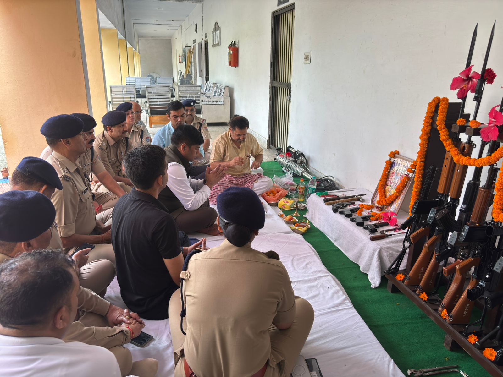 एसएसपी डोबाल निर्धारित परंपरा और संपूर्ण विधि-विधान के साथ क्वार्टर गार्ड पहुंचे और भगवान विश्वकर्मा सहित सभी शस्त्रों, उपकरणों और अस्लाहों की पूजा कर उनका आशीर्वाद ग्रहण किया।