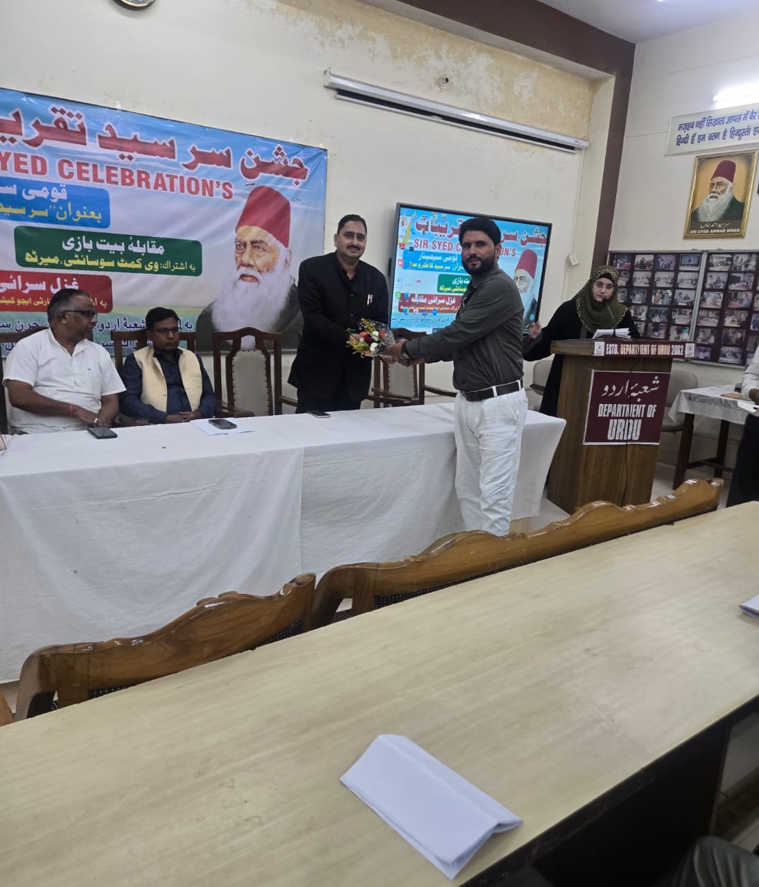 चौधरी चरण सिंह विश्वविद्यालय के प्रोफेसर दिनेश कुमार, प्रोफेसर आराधना सहित कई शिक्षाविद और विद्यार्थी उपस्थित रहे। डॉ॰ नवेद चांदनी अब्बासी और शाहिद ज़मा ने अपने प्रभावशाली विचार प्रस्तुत किए। समारोह का समापन सर सैयद के आदर्शों पर आगे बढ़ने के संकल्प के साथ हुआ।