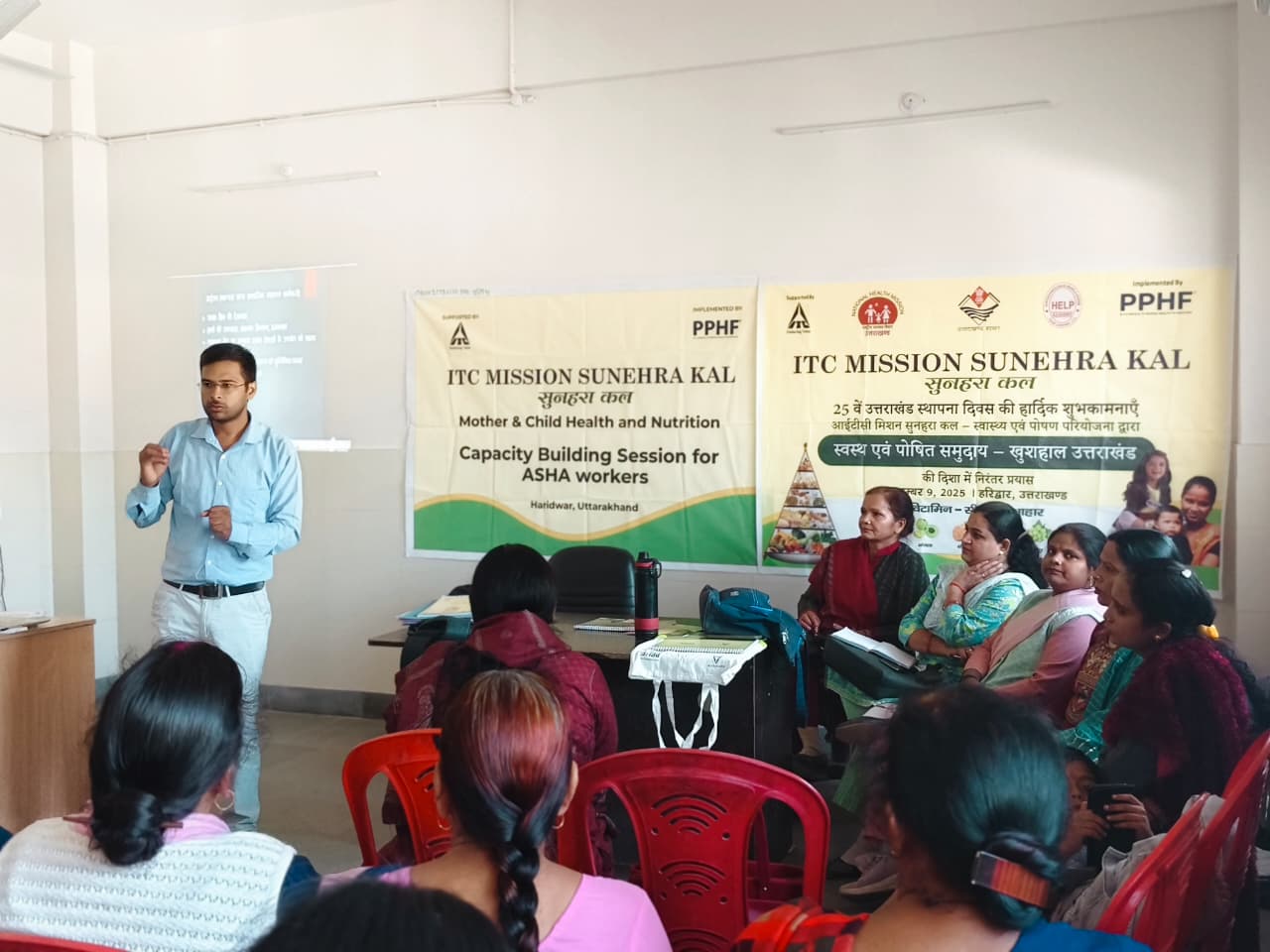 (शहजाद अली हरिद्वार)बहादराबाद (हरिद्वार), 10 नवम्बर 2025: आईटीसी मिशन सुनहरा कल के अंतर्गत पीपल टू पीपल हेल्थ फाउंडेशन द्वारा, स्वास्थ्य विभाग हरिद्वार के सहयोग से, सामुदायिक स्वास्थ्य केंद्र (सीएचसी) बहादराबाद में आशा वर्कर्स की एकदिवसीय प्रशिक्षण कार्यशाला का आयोजन किया गया।