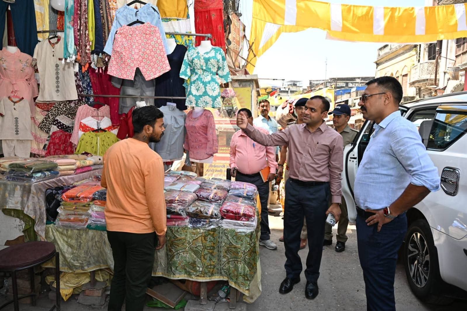 तथा जो भी दुकानें लगाई जा रही है नाली के अंदर ही लगाई जाए, नाली एवं फुटपाथ पर लगाई जाने वाली दुकानों के विरुद्ध आवश्यक कार्यवाही करने के निर्देश पुलिस एवं संबंधित अधिकारियों को दिए।