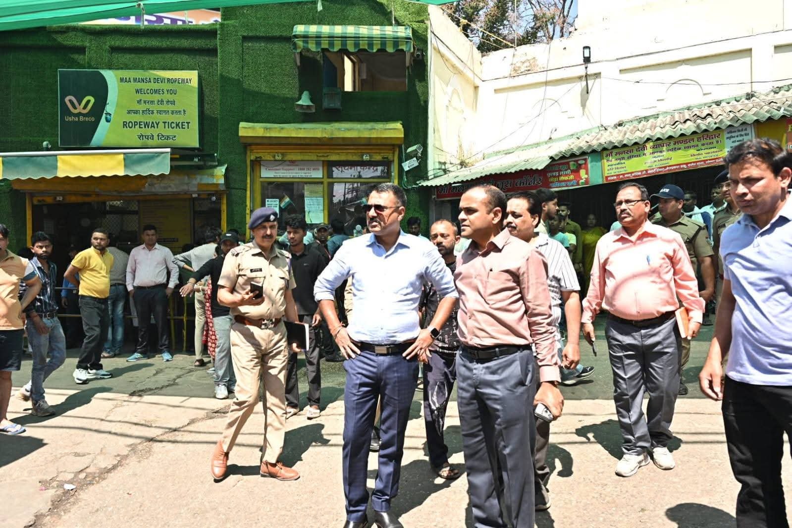 इसके दृष्टिगत जिलाधिकारी मयूर दीक्षित एवं वरिष्ठ पुलिस अधीक्षक नवनीत सिंह भुल्लर ने अपर रोड एवं मां मनसा देवी उड़न खटोला मार्ग एवं आस पास क्षेत्र का निरीक्षण किया तथा संबंधित क्षेत्रों में संचालित हो रही दुकानों को किसी भी दशा में सड़क एवं फुटपाथ पर न लगाई जाए