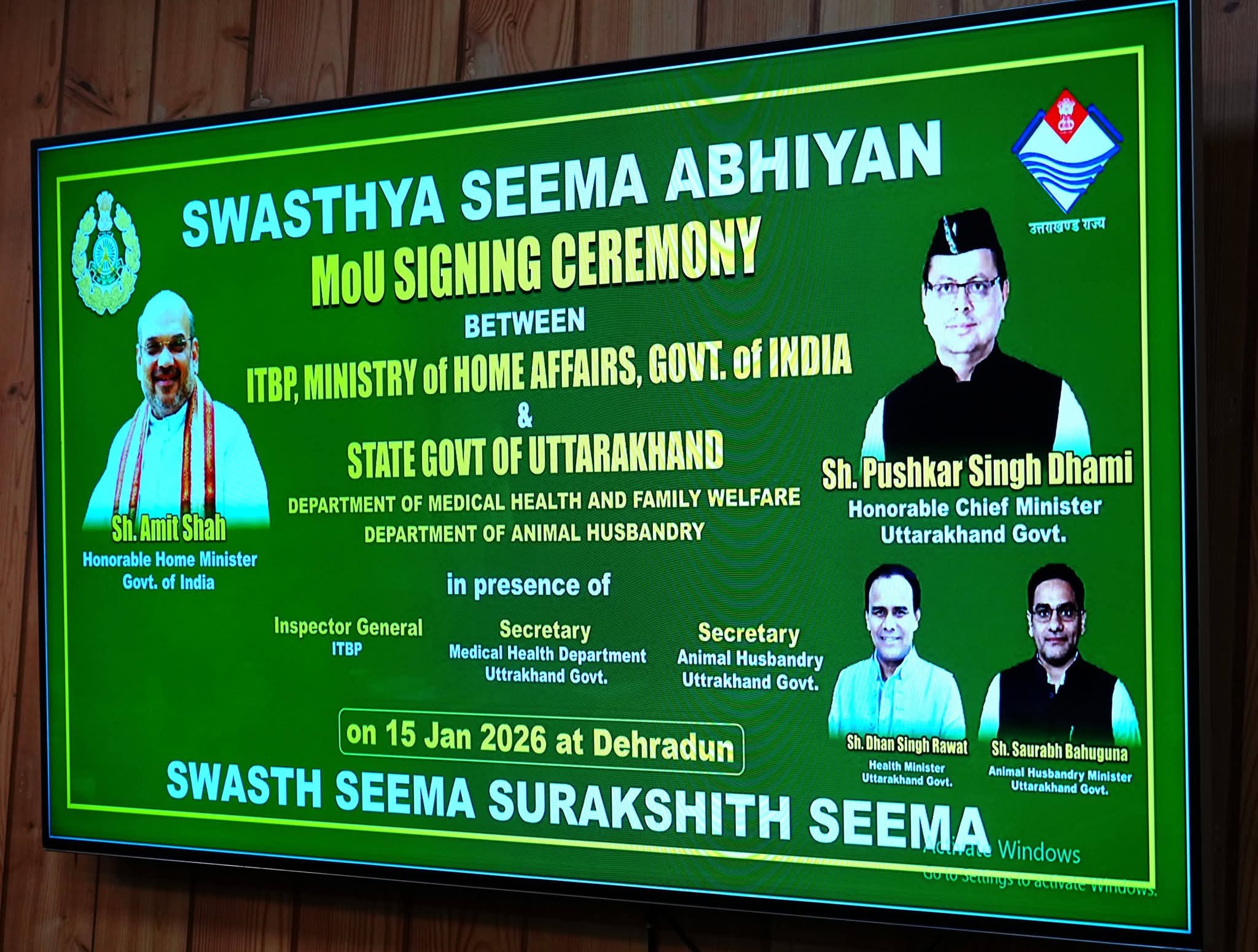 (शहजाद अली हरिद्वार)मुख्यमंत्री श्री पुष्कर सिंह धामी की उपस्थिति में आज मुख्यमंत्री आवास में उत्तराखण्ड शासन एवं भारत–तिब्बत सीमा पुलिस (आईटीबीपी) के मध्य स्वस्थ सीमा अभियान के अंतर्गत एक महत्वपूर्ण समझौता ज्ञापन (MoU) पर हस्ताक्षर किए गए। इस अवसर पर स्वास्थ्य मंत्री डॉ. धन सिंह रावत एवं कैबिनेट मंत्री श्री सौरभ बहुगुणा भी उपस्थित रहे।
