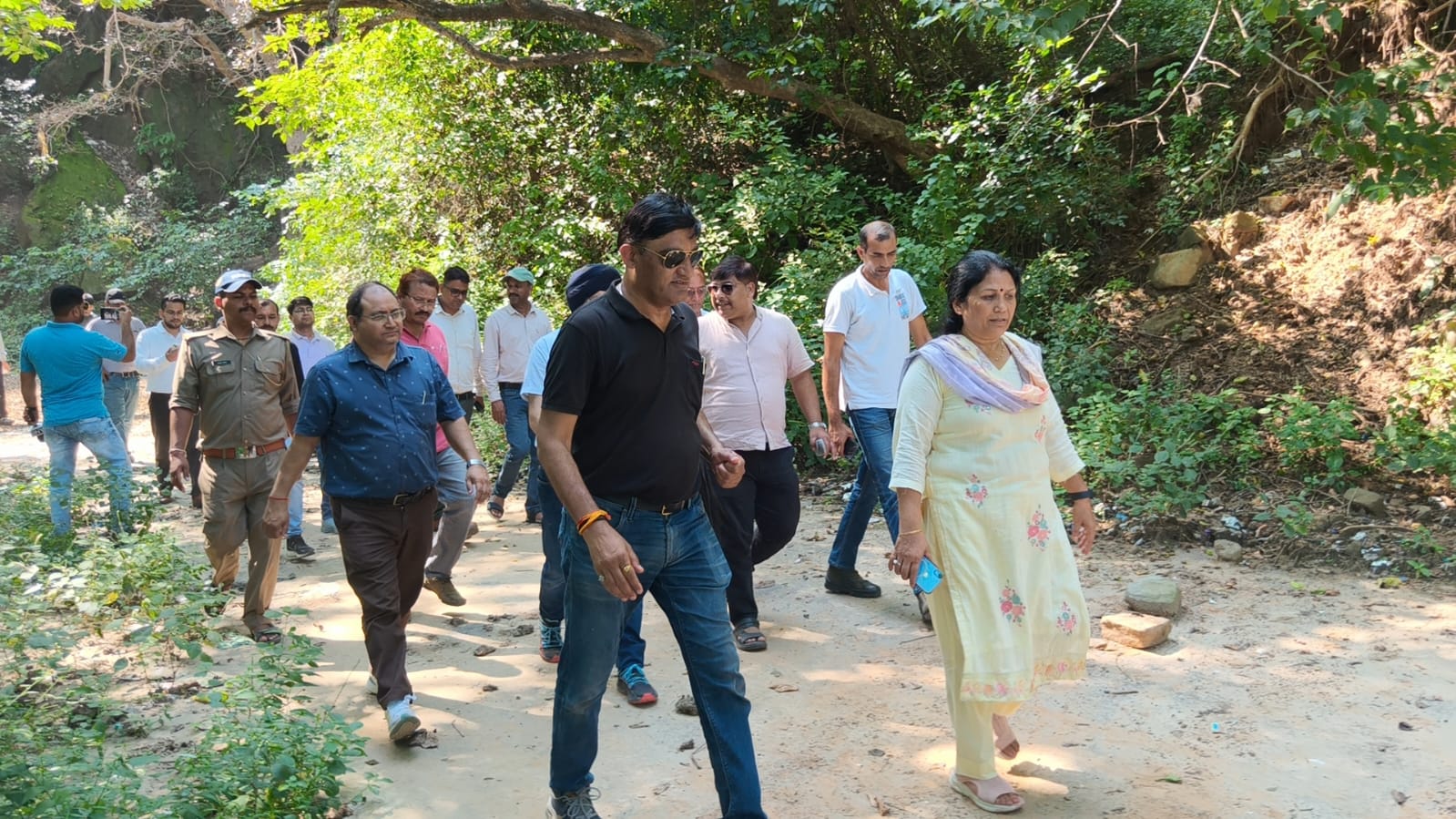 भीमगोड़ा पुल के पास बार-बार रेलवे ट्रेक पर गिर रहे मलवा स्थल तथा मंशा देवी क्षेत्र में भू-स्खलन सम्भावि क्षेत्रों का भी स्थलीय निरीक्षण किया गया।
