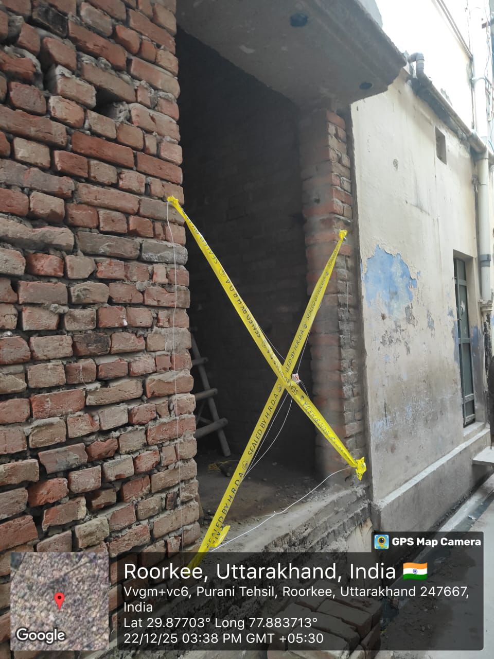 वहीं, रुड़की के पश्चिमी अंबर तालाब क्षेत्र में श्री रविंद्र कुमार द्वारा बिना स्वीकृत मानचित्र के अनाधिकृत निर्माण कार्य किया जा रहा था।
