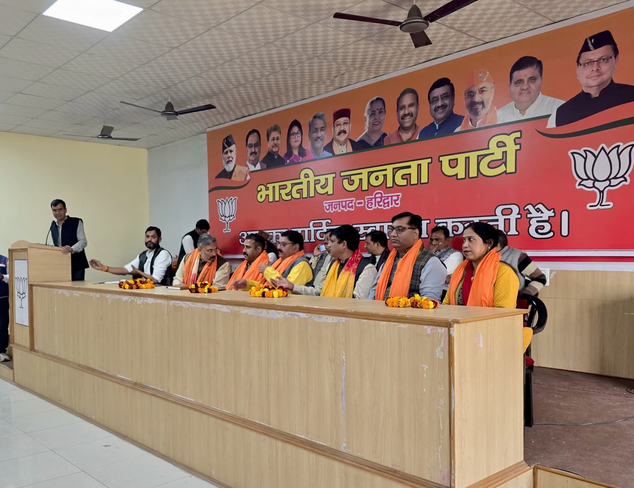 (शहजाद अली हरिद्वार)हरिद्वार। आज भारतीय जनता पार्टी जिला कार्यालय जगजीतपुर हरिद्वार पर नवनियुक्त मोर्चो के जिला अध्यक्षों का स्वागत अभिनंदन समारोह आयोजित किया गया। कार्यक्रम में मुख्य अतिथि के रूप में जिला हरिद्वार भाजपा सहप्रभारी दीपक धमीजा रहे। कार्यक्रम की अध्यक्षता जिला अध्यक्ष आशुतोष शर्मा और संचालन जिला महामंत्री हीरा सिंह बिष्ट और संजीव चौधरी ने किया। नवनियुक्त जिला अध्यक्ष को पार्टी पदाधिकारी द्वारा फूल माला पहनकर और पार्टी का पटका पहनकर स्वागत किया। गया। इस अवसर पर जिला अध्यक्ष आशुतोष शर्मा ने सभी को बधाई और शुभकामनाएं देते हुए कहा कि नवनियुक्त मोर्चा के जिला अध्यक्ष बनने से पार्टी को मजबूती प्रदान होगी। और सभी मोर्चों के अध्यक्ष अपने-अपने क्षेत्र में पार्टी की नीति को जन-जन तक पहुंचाने का काम करेंगे। उन्होंने कहा कि पार्टी के लिए सभी मोर्चे महत्वपूर्ण है। युवा मोर्चा का उद्देश्य युवाओं को पार्टी की विचारधारा में लाना है। और पार्टी के विचारधारा को युवाओं के बीच में ले जाकर युवाओं में पार्टी के प्रति आस्था और विश्वास जगाना है। उन्होंने महिला मोर्चा, किसान मोर्चा, अल्पसंख्यक मोर्चा ,ओबीसी मोर्चा के जिला अध्यक्षों को बधाई और शुभकामनाएं दीनवनियुक्त जिला अध्यक्षों में युवा मोर्चा जिला अध्यक्ष अभिनव चौहान किसान मोर्चा जिला अध्यक्ष जसवीर चौधरी ,ओबीसी मोर्चा जिला अध्यक्ष लोकेश पाल ,महिला मोर्चा जिला अध्यक्ष प्रीति गुप्ता अल्पसंख्यक मोर्चा जिला अध्यक्ष एजाज अहमद को जिला हरिद्वार सहप्रभारी दीपक धमीजा ने बधाई और शुभकामनाएं देते हुए कहा कि मुझे पूरा विश्वास है कि सभी मोर्चों के अध्यक्ष पार्टी को मजबूत करने का काम करेंगे। और घर-घर जाकर पार्टी और राज्य और केंद्र की सरकार की नीतियों को जन-जन तक पहुंचाएंगे। इस अवसर पर दर्जाधारी राज्य मंत्री जयपाल सिंह चौहान ने बताया कि भारतीय जनता पार्टी प्रत्येक कार्यकर्ता को सम्मान देती है प्रत्येक कार्यकर्ता को अपनी पार्टी के प्रति समर्पित होकर काम करना चाहिए।दर्जाधारी राज्य मंत्री ओमप्रकाश जमदग्नि ने कहा कि उत्तराखंड के मुख्यमंत्री पुष्कर सिंह धामी के नेतृत्व में उत्तराखंड सरकार द्वारा अनेकों योजना चलाई जा रही उत्तराखंड सरकार ने गन्ने का मूल्य बढ़ाकर किसानों को तोहफा प्रदान किया है।राज्य मंत्री सुनील सैनी कहा की भाजपा की उत्तराखंड सरकार गरीबों, किसानों पिछड़ों और अनुसूचित जाति के लोगों के लिए कार्य कर रही है ।सभी योजनाओं का लाभ जन जन तक मिल सके इसके लिए सभी कार्यकर्ताओं को गांव-गांव में जाकर सरकार की योजनाओं के बारे में बताना चाहिए। इस अवसर पर जिला उपाध्यक्ष लव शर्मा निपेंद्र चौधरी, सीमा चौहान, तरुण 