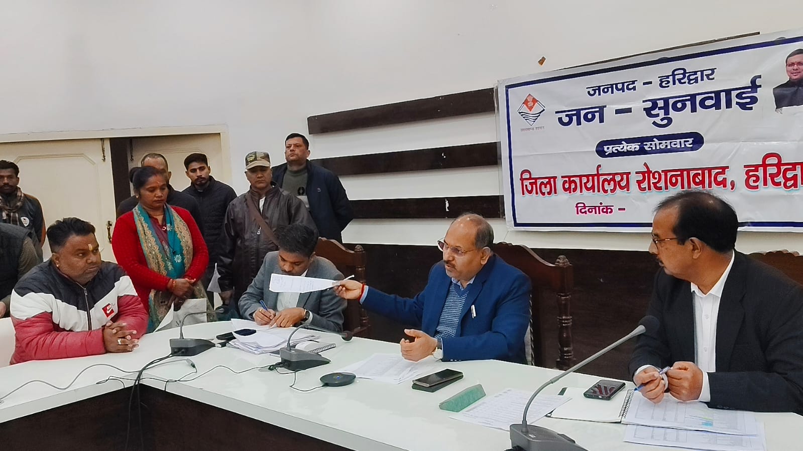 बैठक में अपर जिलाधिकारी (प्रशासन) पी आर चौहान, जिला विकास अधिकारी वेद प्रकाश, उप जिला अधिकारी जितेंद्र कुमार, मुख्य वित्त अधिकारी अजय कुमार, अधिशासी अभियंता लोनिवि डीपी सिंह, अधिशासी अभियंता सिंचाई ओमजी गुप्ता, जिला अर्थ संख्या आधिकारी नलिनी ध्यानी, नोडल स्वजल चंद्रकांत मणि त्रिपाठी, जिला कार्यक्रम अधिकारी धर्मवीर सिंह, फूड सेफ्टी अधिकारी महिमानंद जोशी ,एआरटीओ नेहा झा सहित जिला स्तरीय सम्बन्धित अधिकारी एवं विभिन्न क्षेत्रों से आए फरियादी मौजूद रहे।