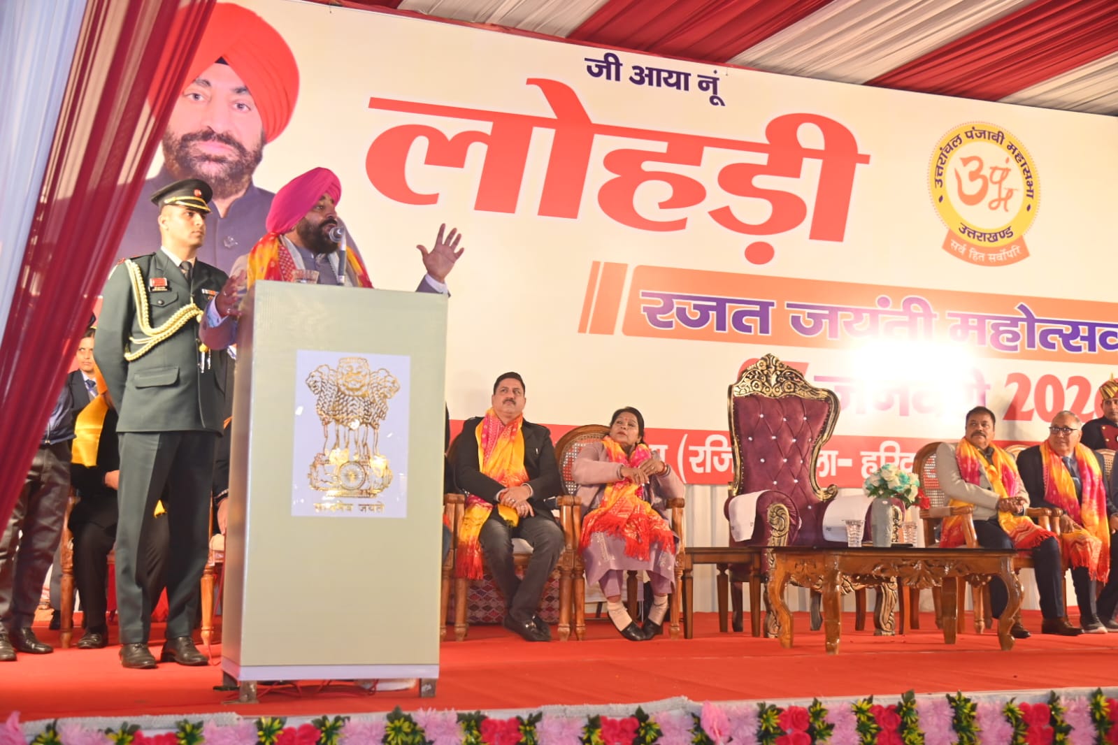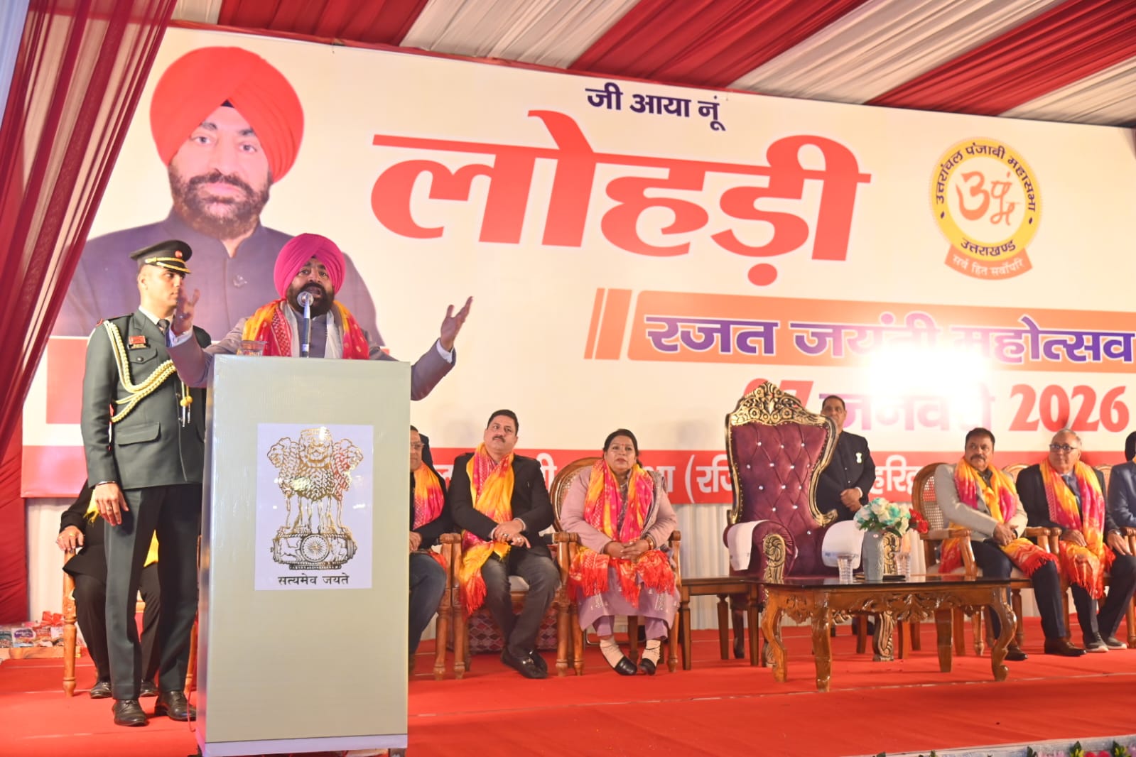 (शहजाद अली हरिद्वार)हरिद्वार।उत्तराखंड के राज्यपाल लेफ्टिनेंट जनरल (सेवानिवृत्त) गुरमीत सिंह ने हरिद्वार में पंजाबी समाज द्वारा आयोजित 26वें भव्य लोहड़ी कार्यक्रम में सहभागिता कर कार्यक्रम की गरिमा को और बढ़ाया। पारंपरिक उल्लास, लोकसंस्कृति की झलक और सामाजिक एकजुटता के संदेश से ओतप्रोत इस आयोजन में बड़ी संख्या में जनप्रतिनिधि, प्रशासनिक अधिकारी और आम नागरिक उपस्थित रहे। राज्यपाल ने इस अवसर पर उपस्थित जनसमुदाय को लोहड़ी पर्व की हार्दिक शुभकामनाएं देते हुए देश और प्रदेश की सुख-समृद्धि एवं खुशहाली की कामना की।अपने संबोधन में राज्यपाल गुरमीत सिंह ने कहा कि लोहड़ी केवल एक पर्व नहीं, बल्कि सांस्कृतिक चेतना, मांगलिक आशीर्वाद और जन-सरकारों से जुड़ा हुआ उत्सव है। यह पर्व मुख्य रूप से फसल और कृषि से जुड़ा है, जो नए वर्ष के आगमन की खुशियों का प्रतीक है तथा समाज में सकारात्मक ऊर्जा का संचार करता है। उन्होंने कहा कि भारतीय संस्कृति में ऐसे पर्वों का विशेष महत्व है, जो मनुष्य को प्रकृति, परिश्रम और आपसी सहयोग से जोड़ते हैं।राज्यपाल ने कहा कि माननीय प्रधानमंत्री नरेंद्र मोदी भारत की सांस्कृतिक विविधता को “अनेकता में एकता” के रूप में परिभाषित करते हैं और लोहड़ी पर्व भी इसी भावना का सशक्त उदाहरण है। यह त्योहार न केवल पंजाब या पंजाबी समाज तक सीमित है, बल्कि देश-विदेश में मानवता, भाईचारे, समरसता और बंधुत्व का संदेश देता है। लोहड़ी जैसे पर्व समाज को जोड़ने का कार्य करते हैं और राष्ट्र प्रथम की भावना को भी सुदृढ़ करते हैं।उन्होंने पंजाबी समाज की लोक कला, संगीत और सांस्कृतिक विरासत की सराहना करते हुए कहा कि इसकी दुनिया में कोई तुलना नहीं है। पंजाबी संगीत और लोकनृत्य में ऐसी ऊर्जा और मधुरता है कि कोई भी व्यक्ति अपने आपको थिरकने से रोक नहीं पाता। यह कला न केवल मनोरंजन का माध्यम है, बल्कि जीवन में उत्साह और सकारात्मक सोच का संचार भी करती है।राज्यपाल ने कोविड-19 महामारी के कठिन समय में पंजाबी समाज द्वारा किए गए मानव सेवा के अथक प्रयासों की भी मुक्त कंठ से प्रशंसा की। उन्होंने कहा कि गुरु परंपरा के अनुरूप पंजाबी समाज हमेशा दूसरों के दुख-दर्द में सहभागी बनकर सामने आता है। चाहे लंगर सेवा हो, जरूरतमंदों की सहायता या संकट के समय समाज के लिए आगे आना—पंजाबी समाज ने हर परिस्थिति में मानवता का परिचय दिया है।अपने संबोधन में राज्यपाल ने गुरु परंपरा के विचारों का उल्लेख करते हुए कहा कि आज की अस्थिर और संघर्षपूर्ण दुनिया में गुरु के संदेशों का अत्यधिक महत्व है। गुरु ने सभी मनुष्यों की उत्पत्ति एक ही स्रोत से बताई है, इसलिए सभी को आपसी सहिष्णुता, प्रेम और सद्भाव के साथ रहना चाहिए। उन्होंने कहा कि 