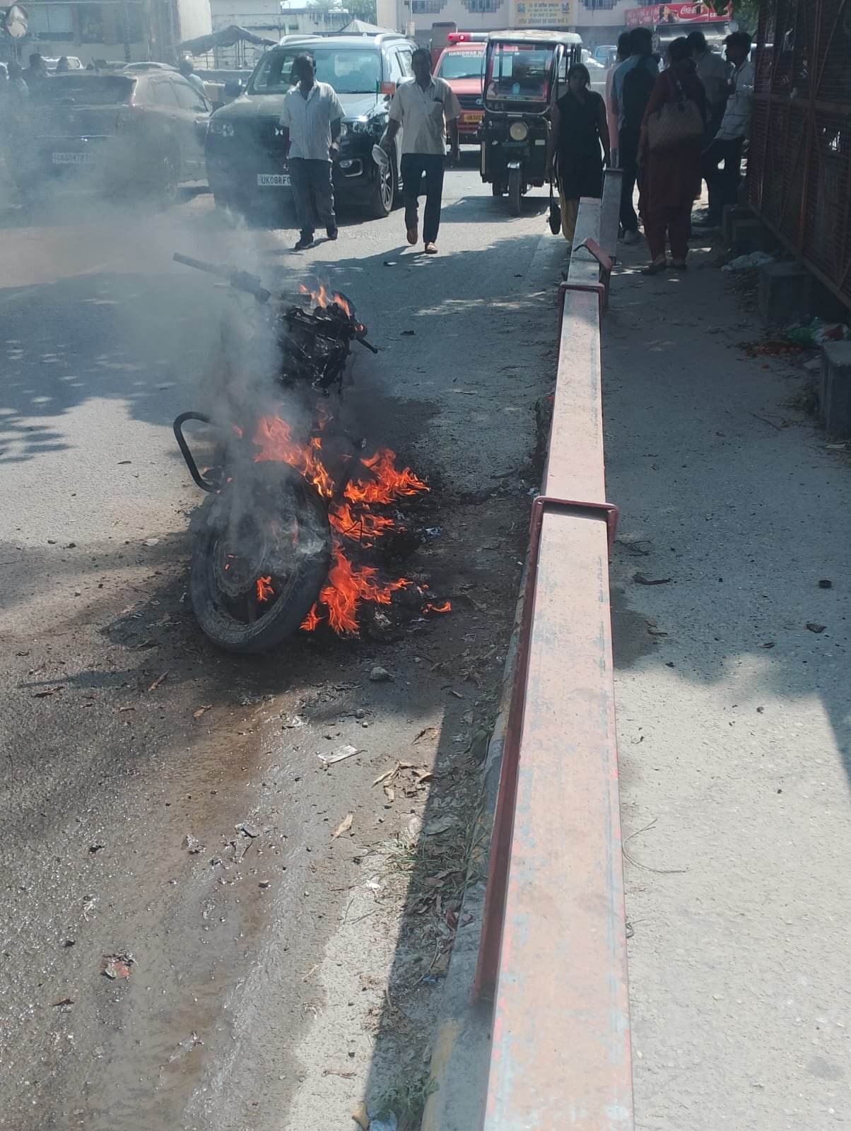 (शहजाद अली हरिद्वार)हरिद्वार कोतवाली क्षेत्र के ऋषिकुल पुल पर शनिवार को उस समय हड़कंप मच गया जब चलते-चलते एक बाइक में अचानक आग लग गई।