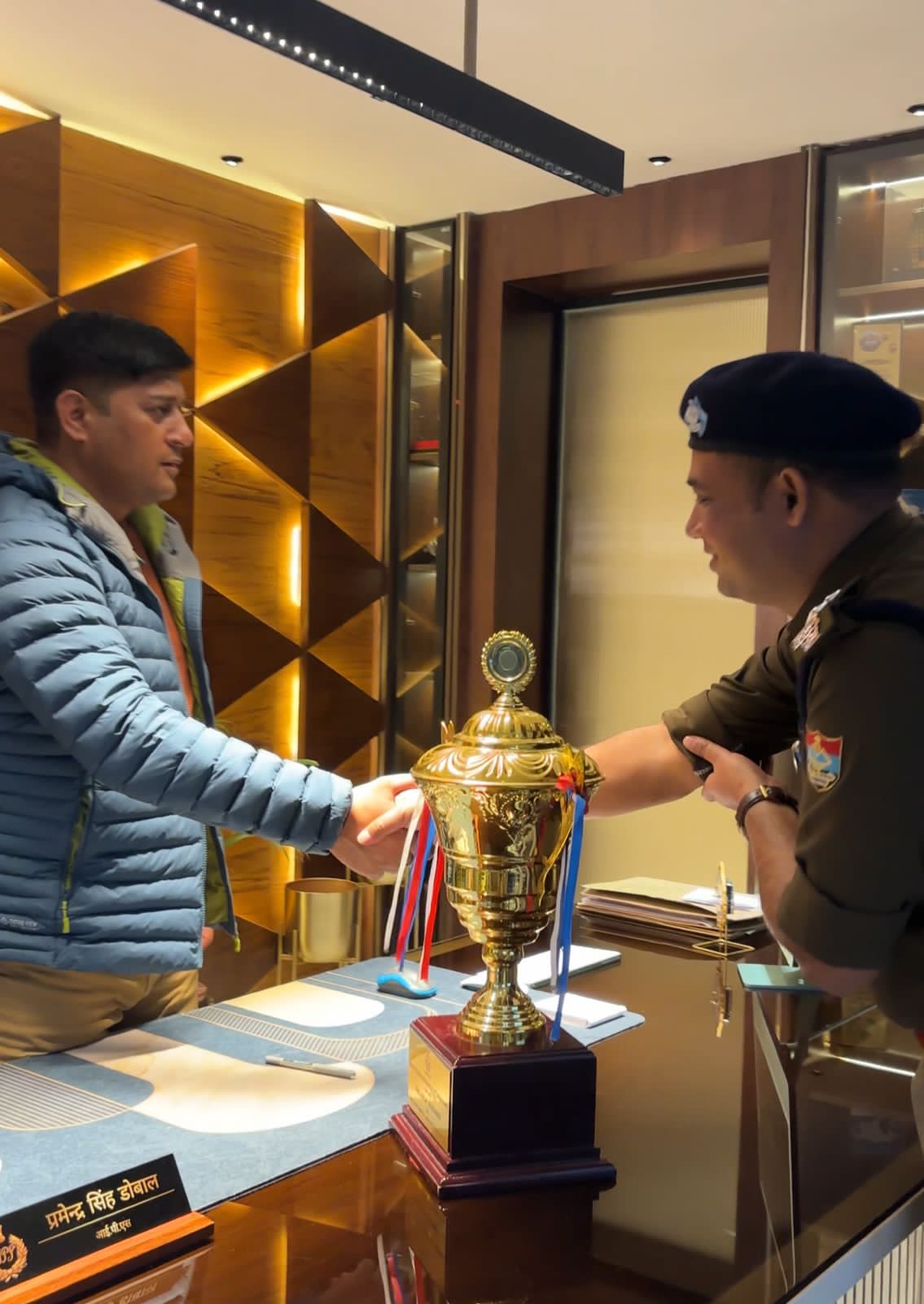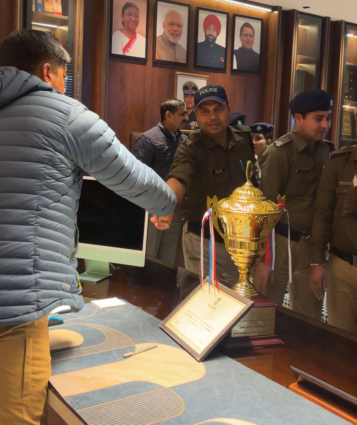 उपलब्धि के साथ ट्रॉफी लेकर वरिष्ठ पुलिस अधीक्षक (एसएसपी) हरिद्वार के कैंप कार्यालय पहुंचकर शिष्टाचार भेंट की। इस अवसर पर पूरे पुलिस महकमे में उत्साह और गर्व का माहौल देखने को मिला।